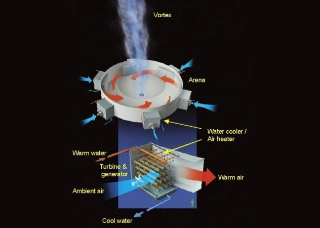 Идею создания вихревых потоков для питания автомобиля придумал канадский инженер Луи Мишо. Он предложил использовать энергию искусственно созданных торнадо для вращения турбин и генерации электричества. Для тих целей нужно создать смерч, силу которого генератор будет преобразовывать в электричество. Торнадо создается путем подогрева пласта воздуха, с последующей его круговой разгонкой до больших скоростей.