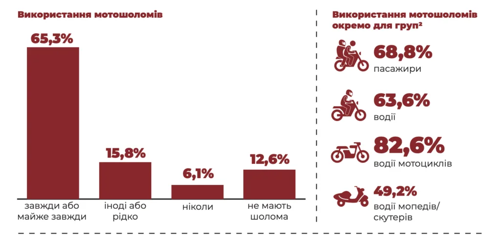 - Результати всеукраїнського опитування дорослих жителів України щодо обовʼязково використання сертифікованих мотошоломів (КМІС, вересень 2025)