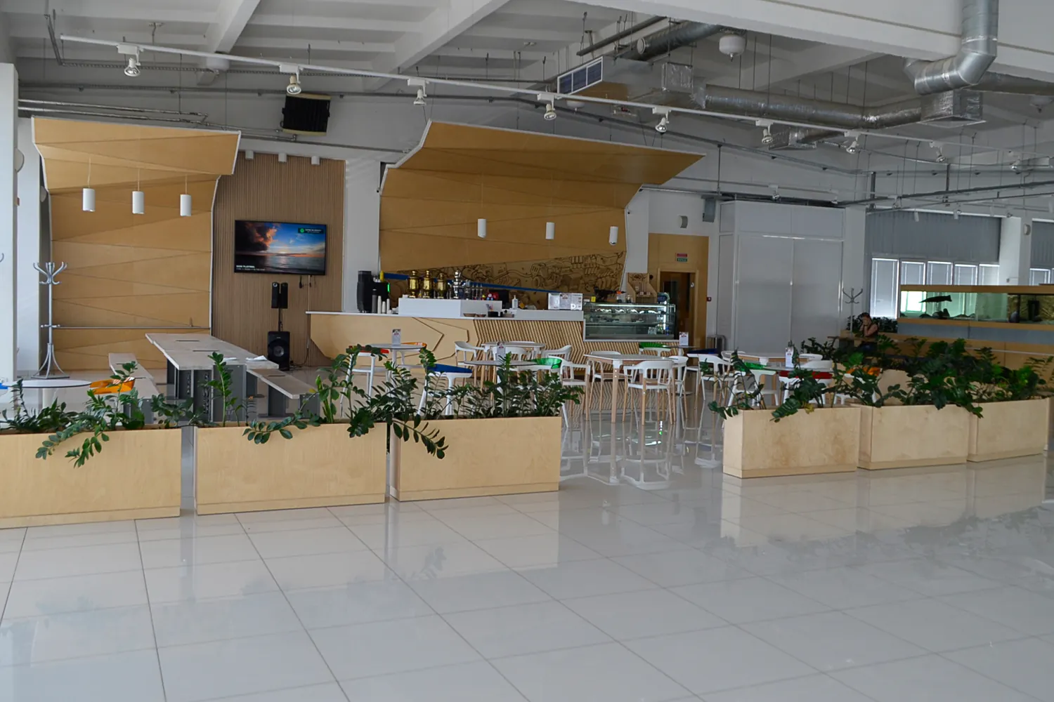 На втором этаже автосалона находится комфортная зона ожидания и отдыха с панорамным видом на всю ремзону, где можно увидеть, как ремонтируют ваш автомобиль, выпить чашечку кофе и воспользоваться точкой доступа Wi-Fi.