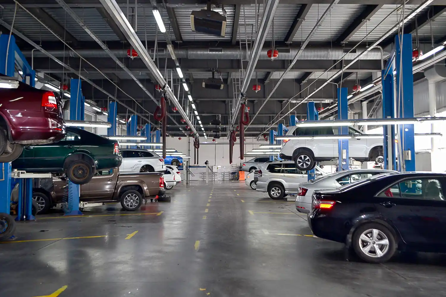Мощности сервиса “Интерциклон” - это 25 подъемников, которые позволяют производить диагностику и ремонт без утомительных очередей и долгого ожидания. Также большинство запасных частей, которые необходимы для текущего ремонта, есть на складе сервисного центра. Если же запчасть редкая и отсутствует, то она может быть доставлена в течении 1-3 дней.