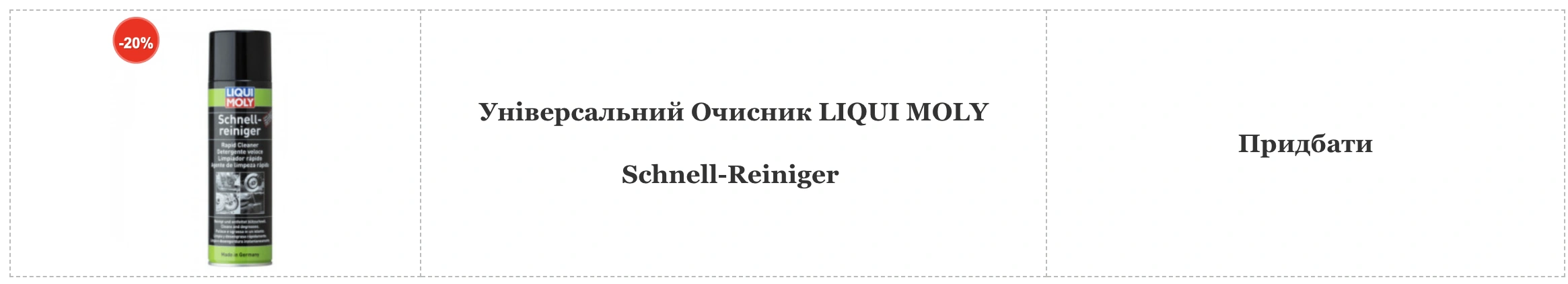 Если вы еще не пользовались очистителем Schnell-Reiniger від LIQUI MOLY, то советуем вам обязательно попробовать, ведь он может стать вашим надежным помощником в поддержании чистоты в гараже, автосервисе, производственном предприятии или домашней мастерской. А сейчас по всей Украине проходит акція від LIQUI MOLY на данный продукт! Подробности акции вы можете узнать на официальном сайте LIQUI MOLY Украина. Не упустите возможность приобрести этот универсальный очиститель по выгодной цене и убедиться в его эффективности!-