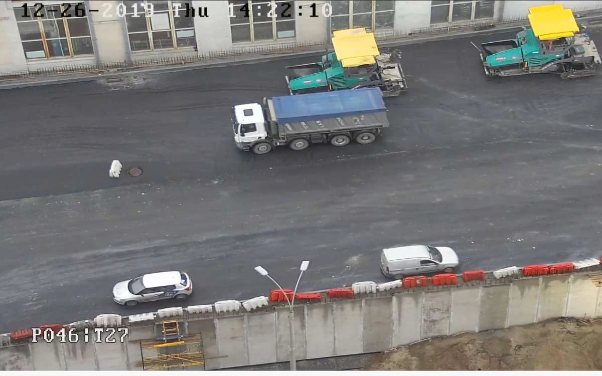Вьезд со стороны улицы Довженко еще в меньшей степени готовности. Класть асфальт здесь начали только сегодня с утра. И это при том, что неоднократно были заявлены испытания на прочность моста именно сегодня. Интересно, как 30-тонные грузовики должны попасть на путепровод?
