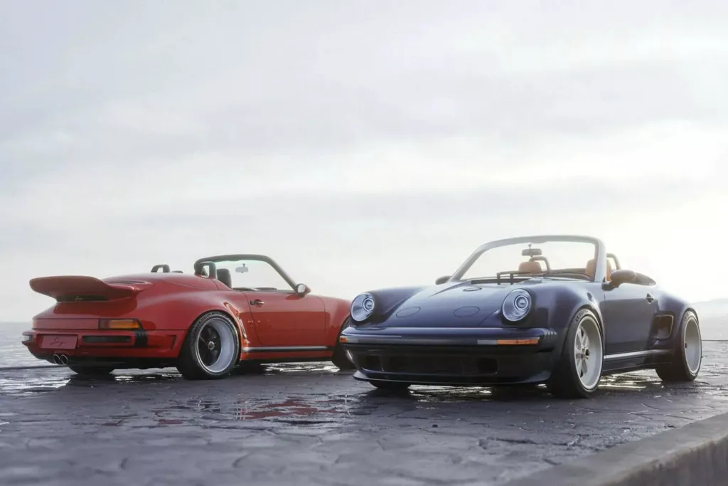 Компания Singer расширила ассортимент своих рестомодов, представив кабриолет на основе семейства 964, причем, сразу в двух вариантах – в комплектации Pacific Blue Touring и Guards Red Sport. В обоих случаях кузов выполнен из карбона, дополнен расширенными крыльями и выдвижными дополнительными фарами, встроенными в капот, что является отсылкой к гоночным автомобилям той эпохи.