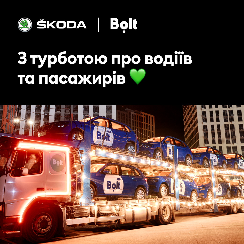 ⃰ Условия акции «Розыгрыш для водителей BOLT: 4 автомобиля ŠKODA и 7 телевизоров» размещены по ссылке https://blog.bolt.eu/uk/winter-promo/