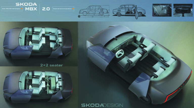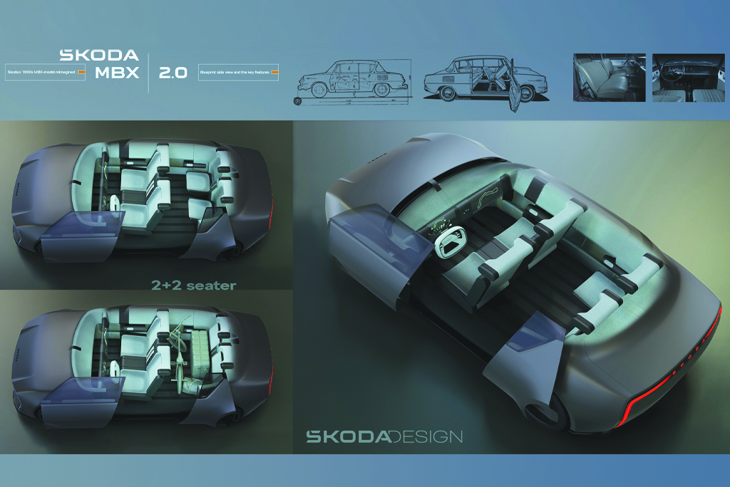 Двухдверный хардтоп без центральной стойки Škoda 1000/1100 MBX производился несколько лет (1966-1969), а его тираж составил всего 2517 экземпляров. Автомобиль имел оригинальный дизайн несущего кузова с окнами без рамок и заднее расположение двигателя. Знаковая модель послужила источником вдохновения для стилистов компании – дизайнер экстерьера Антти Макаэля Савио (Antti Mikael Savio) и дизайнера интерьера Дэвида Стингла (David Stingl), которые создали концепт в современной фирменной стилистике Modern Solid.