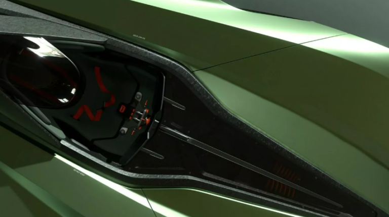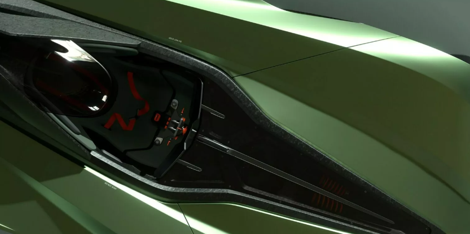 Салон авто одноместный. В нем установлено спортивное сиденье с шеститочечным ремнем безопасности и футуристический руль из углеродного волокна. Также есть цифровая приборная панель, которая выполняет функцию цифрового зеркала заднего вида.
