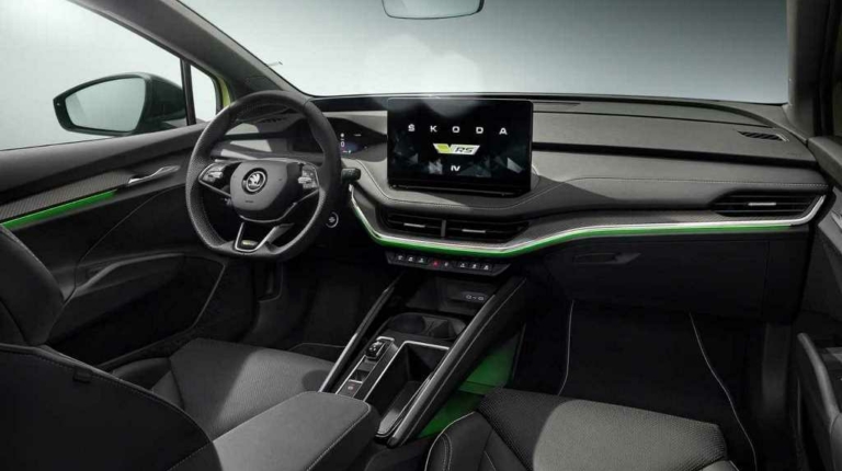 Спортивный Enyaq будет доступен в двух кузовах – кроссовер и кросс-купе. От стандартной модели внешне он почти не отличается. Электромобилю только добавили обвес и установили 20-дюймовые диски с особым дизайном. В салоне появилась более современная мультимедийная система, проекционный дисплей и иная цифровая приборная панель. Также добавлены USB-C порты для задних пассажиров, подушки безопасности для второго ряда и расширенный пакет систем помощи водителю.