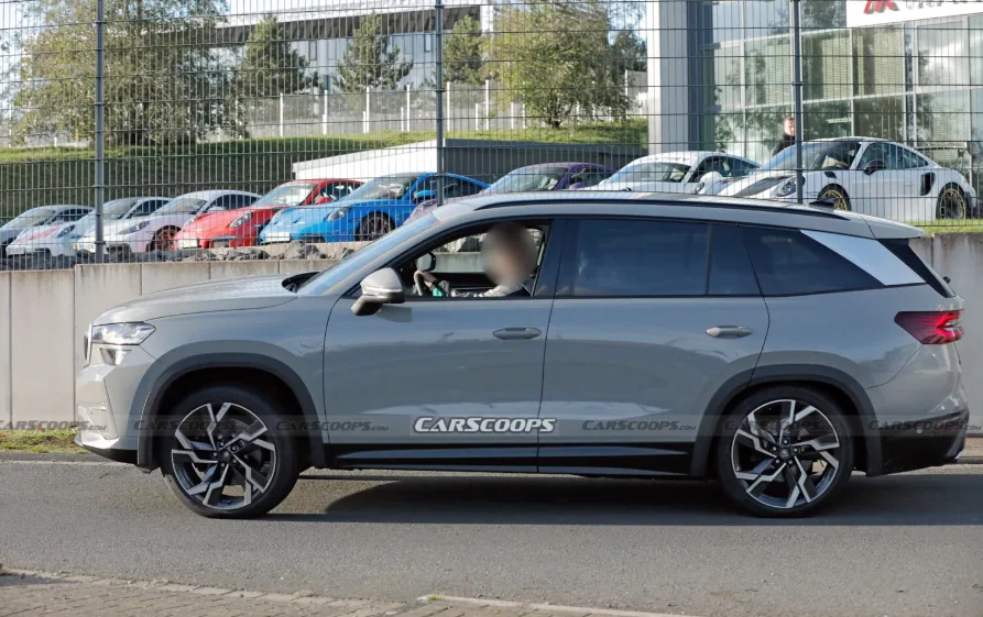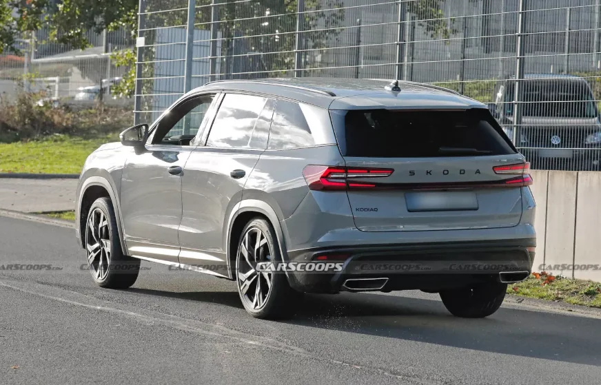 Тестовые мулы вышли на дорожные испытания без маскировки, что позволило рассмотреть их особенности. Новинка во многом повторяет базовый Kodiaq, отличия сводятся к более агрессивному переднему бамперу и увеличенному воздухозаборнику. Еще кроссовер получил темные накладки на порогах, новые 20-дюймовые колесные диски с более динамичным дизайном и прямоугольные патрубки выхлопной системы.