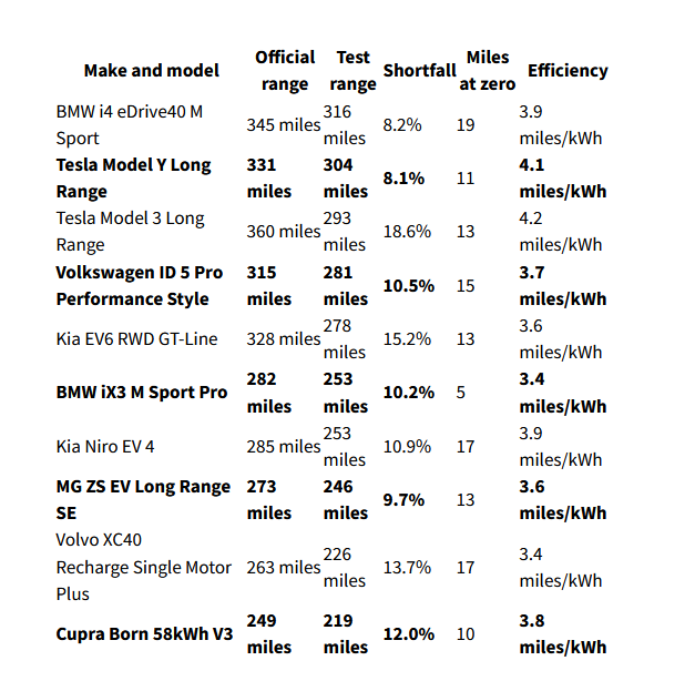 Они не стали опираться на показания пользователей электрокаров, а провели тестирование самостоятельно. Эксперты взяли десять самым популярных моделей и эксплуатировали их до тех пор, пока индикатор заряда не показал цифру в 0%. После достижения этого показатели они продолжали движение до полной остановки электромобиля. Полученные результаты приятно удивили.