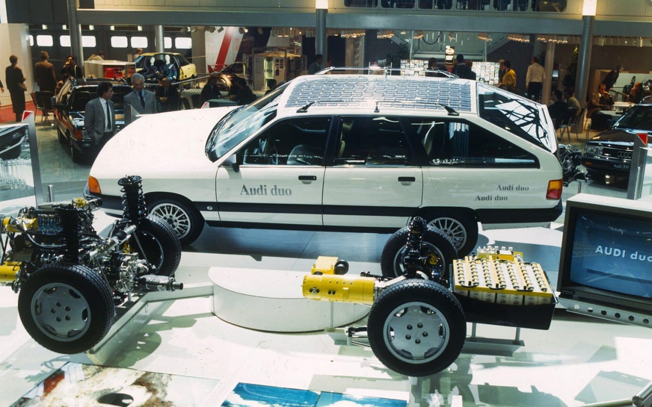 Сегодня автомобилем с подключаемой гибридной силовой установкой – Plug-in-Hybrid уже не удивишь. Такие машины есть в линейке практически у каждого крупного производителя. Другое дело 35 лет назад. На Франкфуртском автосалоне 1989 года был презентован концепт-кар Audi Duo. Он был разработан на базе серийного универсала Audi 100 Avant поколения C3.