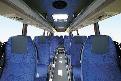 Отличную термо- и шумоизоляцию обеспечивают двойные тонированные стекла. Большая площадь остекления, включая лобовое стекло, предоставляет пассажирам прекрасную обзорность, что немаловажно для туристического автобуса. В корме установлен 3,8-кубовый багажный отсек, а общая емкость багажников, включая боковые отсеки, достигает 4,5 м куб.