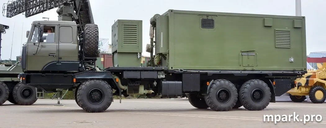 В состав этого комплекса РЛС входит как антенная машина, так и машина управления (на фото).