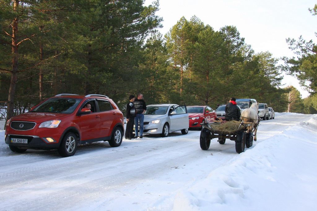 Следующие в колонне благотворительного автопробега по Украине «АИС-детям» SsangYong Korando, Geely SC5RV, УАЗ «Патриот Спорт», MG 350, MG 550 и два фургона «Газель» ГАЗ-2705-388 и «Соболь-Бизнес» вчера двигались преимущественно по чистым от снега дорогам. Исключение составила живописная во всех отношениях брусчатка в районе села Чудель (Ровенская обл.), где мы среди сугробов встречали полноприводные многоосные лесовозы, гужевой транспорт и даже зафиксированный на постаменте реактивный самолет (скорее всего, МиГ-15). Воспитанники школы-интерната в Чуделе помогли разгрузить из машин одежду, обувь, средства гигиены, книги, канцтовары, компьютеры, мячи и, конечно же, сладости.