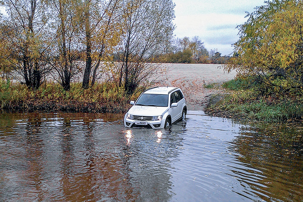 Но есть и те, кто сознательно искал настоящий внедорожник, чтобы добраться до дачи в распутицу или рвануть за грибами, на охоту в отдаленные леса, где большой ручей или речушку иногда приходится брать вплавь. Такие романтики в первую очередь исследуют водоплавающие способности машины и знают всю ее внедорожную геометрию. Для Grand Vitarа, например, производитель в графе «максимальная глубина брода» декларирует цифру 40 см. Но даже такая оптимистичная величина (большинство кроссоверов не ныряют глубже 30 см) не гарантирует, что вы с легкостью преодолеете небольшой водоем. Прежде чем намочить колеса, нужно проделать несколько несложных операций. Ведь сгоряча нырнув, можно ни много ни мало убить мотор, получив гидроудар. Это когда, хлебнув воды через воздухозаборник, мотор засасывает ее в цилиндры. Но в отличие от воздуха, она не сжимается и в результате гнутся клапаны и шатуны или деформируется головка блока цилиндров.
