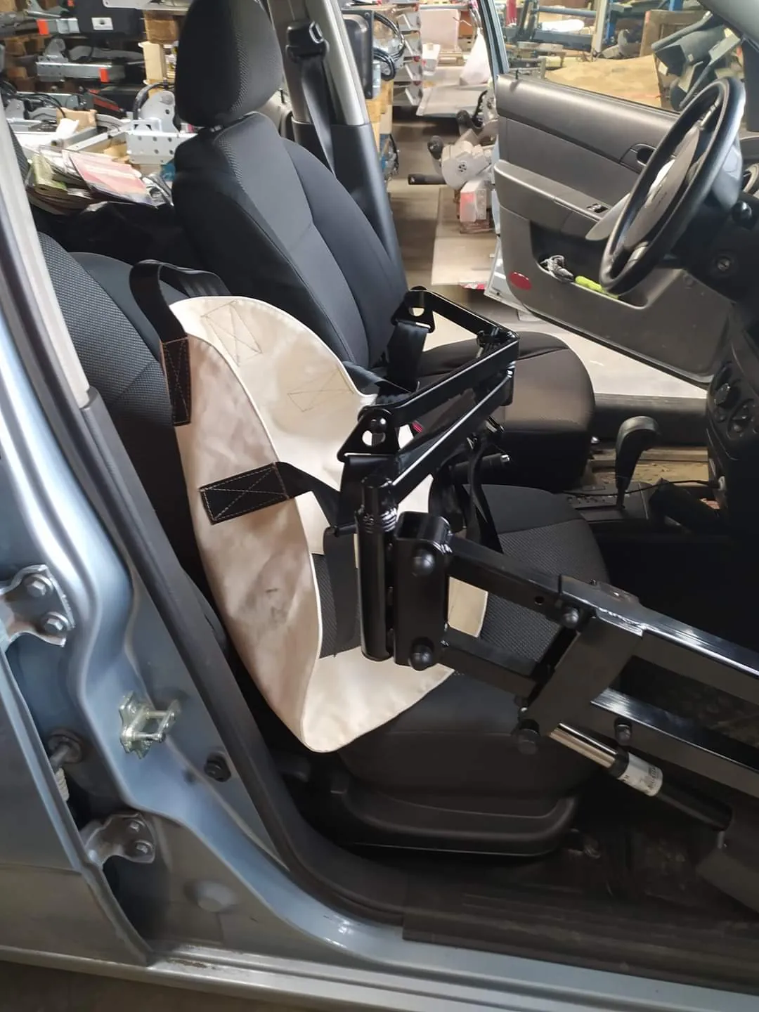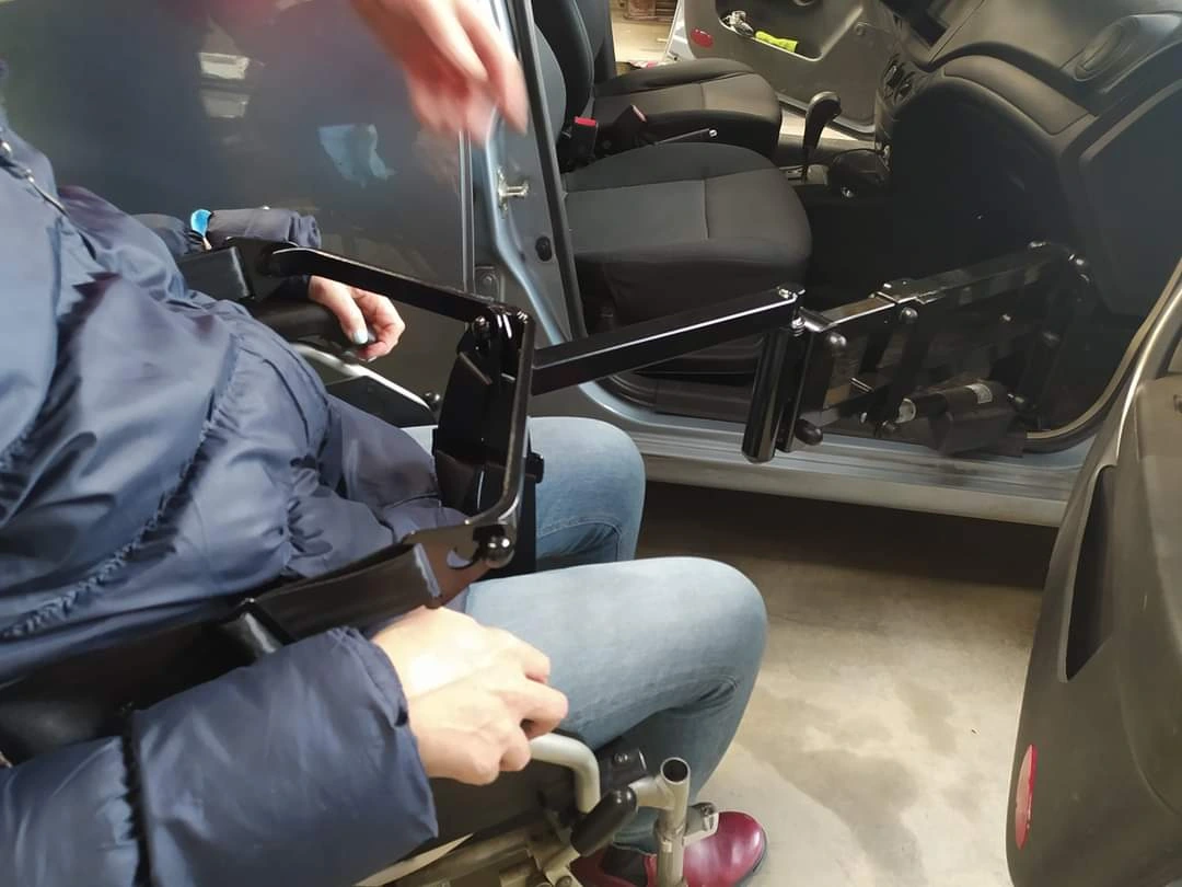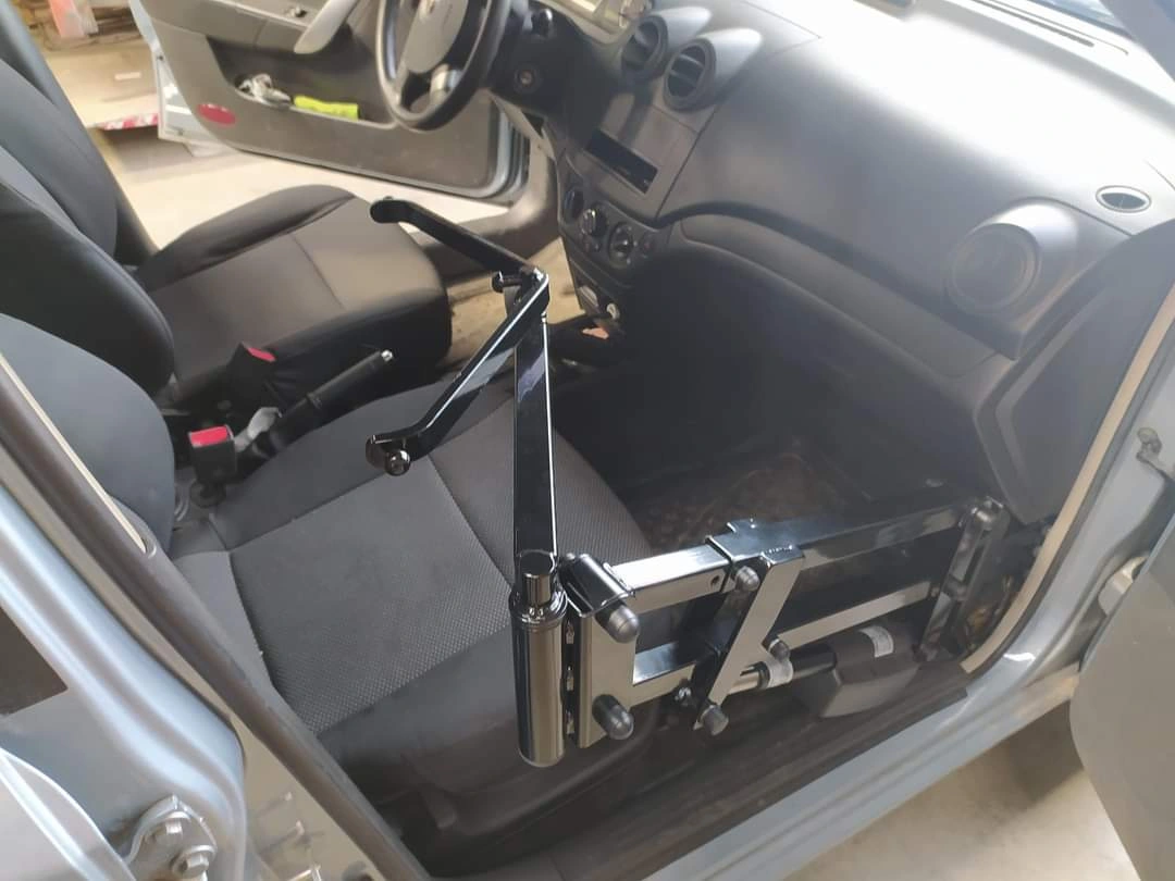 На днях в Украине был реализован уникальный проект по переоборудованию обычного легкового автомобиля Chevrolet Aveo в машину для транспортировки людей c инвалидностью. В дверном проеме со стороны переднего пассажира установили съемный электромеханический подъемник, который с помощью тканевого захвата переносит человека с коляски на сиденье автомобиля. Грузоподъемность подъемника достигает 120 кг. Управление таким «мини-краном» возможно либо с дистанционного пульта, либо с проводного.
