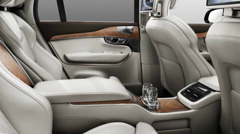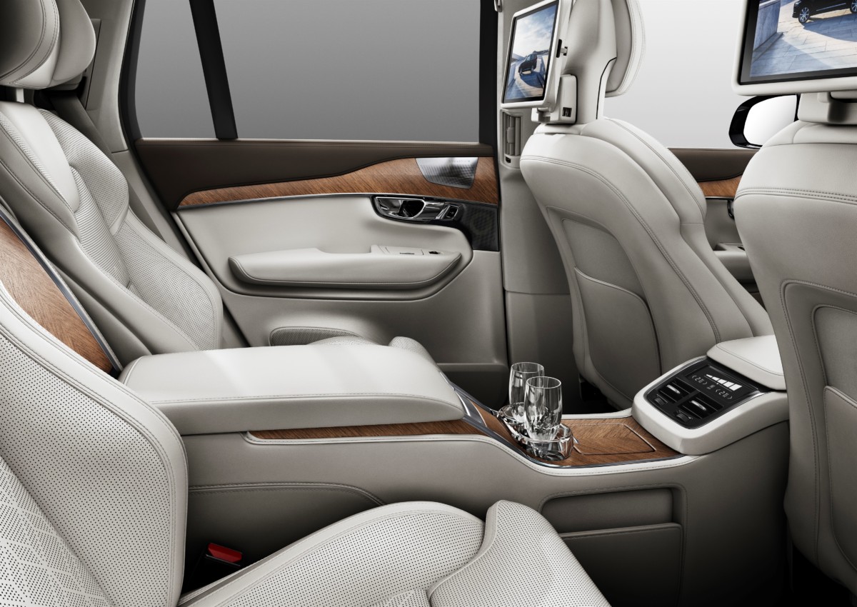 В новом автосалоне были представлены сразу две важные новинки Volvо. Во-первых, впервые в Украину привезли флагманский Volvo XC90 в эксклюзивной люксовой версии Excellence. От обычного Volvo XC90 она отличается чрезвычайно высоким уровнем оснащения и комфорта, в первую очередь заднего ряда сидений. Здесь установлены два отдельных кресла с индивидуальными настройками. Кресла разделяет высокая консоль, в которую встроен центр управления климатом, настройками кресел (подогрев, вентиляция, массаж), а также холодильник и набор хрустальных бокалов. Стоимость такой топовой версии XC90 T8 Excellence составляет 130 000 евро!