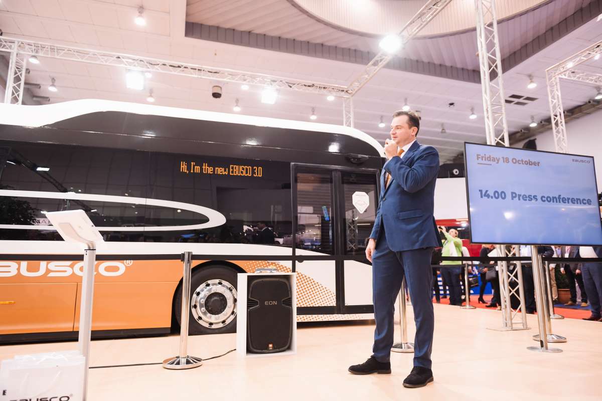 На выставке Busworld Europe 2019 в Брюсселе дебютировал очень интересный электробус – Ebusco 3.0. По сравнению с предшествующей моделью – Ebusco 2.2, запас хода у новинки увеличился с 450 до 500 км, а снаряженная масса сократилась на 33% – до 8530 кг. Пассажировместимость поднялась – с 90 до 95 человек.