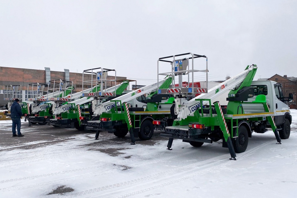 Для восстановления критической инфраструктуры Харьковской области на днях были отправлены пять новеньких автовышек итальянской марки Comet. Особенность этой партии в том, что впервые 18-метровую модель Comet 19-2-14 HQ установили на полноприводное шасси IVECO Daily 50S18H. Сборка была произведена на Заводе спецтехники «Техкомплект».