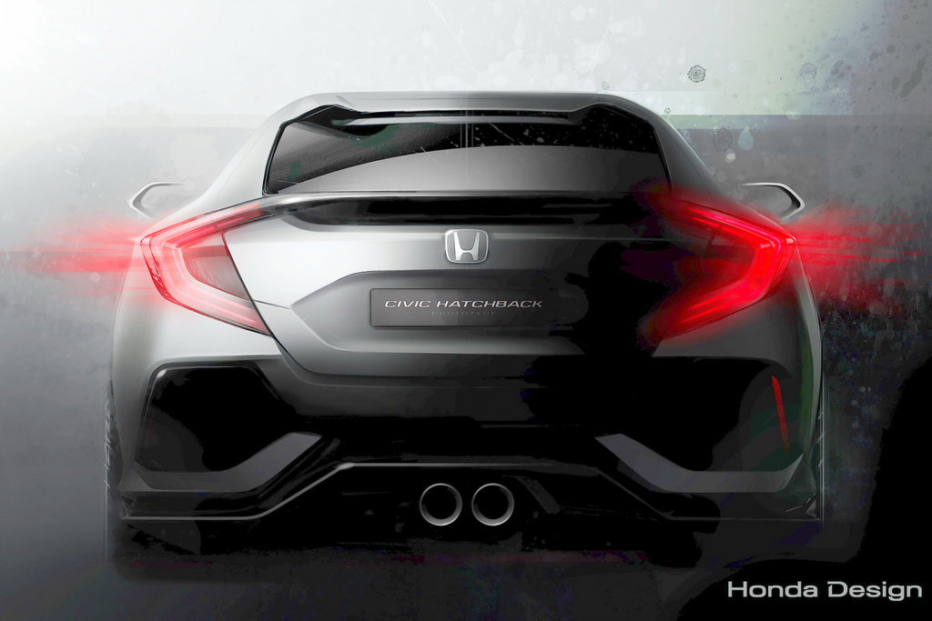 Компания Honda опубликовала первый скетч прототипа хэтчбека Civic нового поколения. Серийная модель пятидверного хэтчбека появится на европейском рынке в начале 2017 года. Производство модели наладят британском заводе в Суиндоне, в модернизацию которого инвестируют 270 миллионов евро. С конвейера будет сходить около 120 тысяч машин ежегодно.