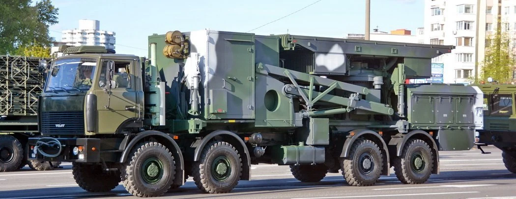 В феврале нынешнего года РЛС-150 впервые испытали в паре с вот такой «машинкой». Она уже знакома нашим читателям. Это пусковая заряжающая установка 9А319К зенитного ракетного комплекса Бук-МБ3К на шасси МЗКТ-692250. Вместе с РЛС-150 на параде они шли парой.
