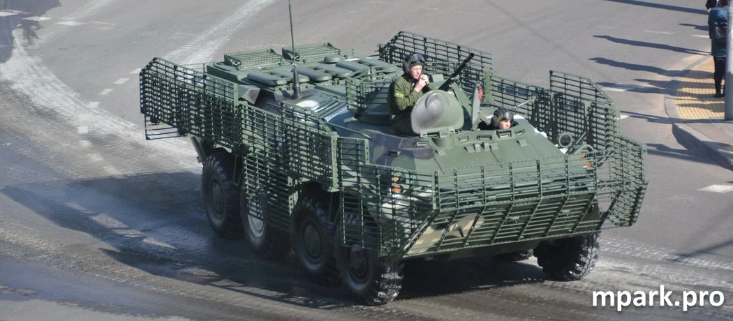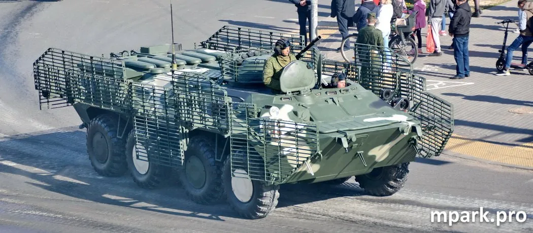 А это уже БТР-80 с белорусскими защитными экранами. Найдите 10 отличий.