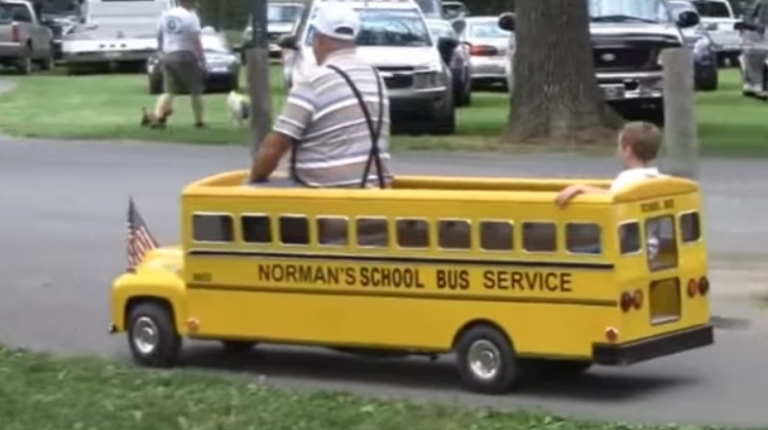 Также отметим копию пикапа Ford 40-х гг. и даже капотный школьный автобус 50-х, который в нашем случае имеет длину 2 м с хвостиком и оснащен еще одним пассажирским местом для ребенка.