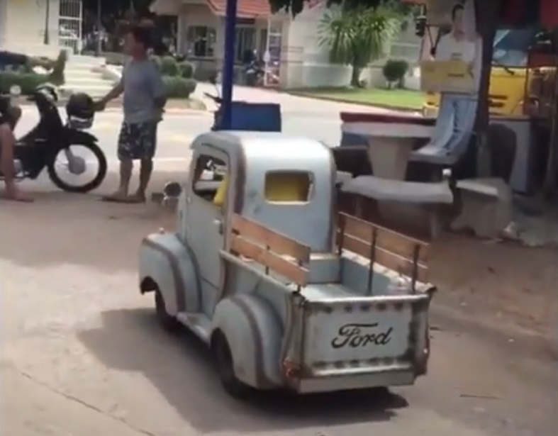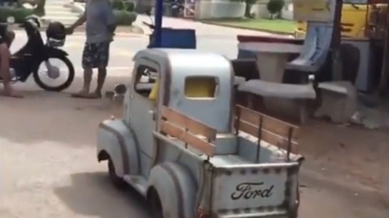 Уменьшенные копии встречаются не только старых автомобилей, но и совсем новых. Это, например, концептуальный пикап Tesla Cybertruck, который поразил всех своим угловатым дизайном.