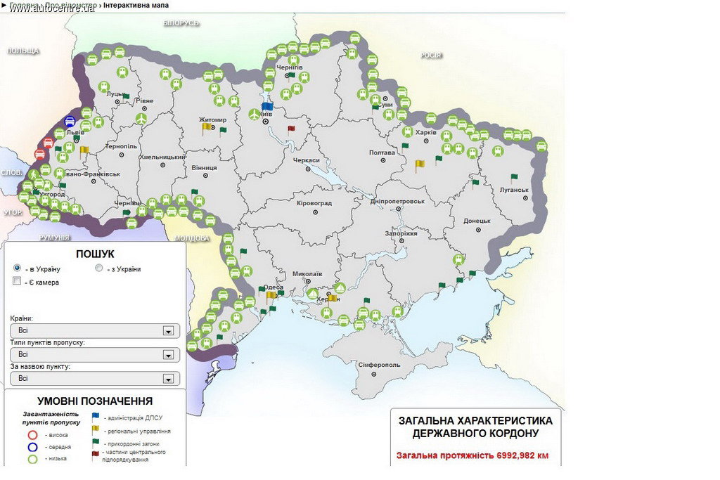 Госпогранслужба запустила интерактивную карту пунктов пропуска на границе Украины
