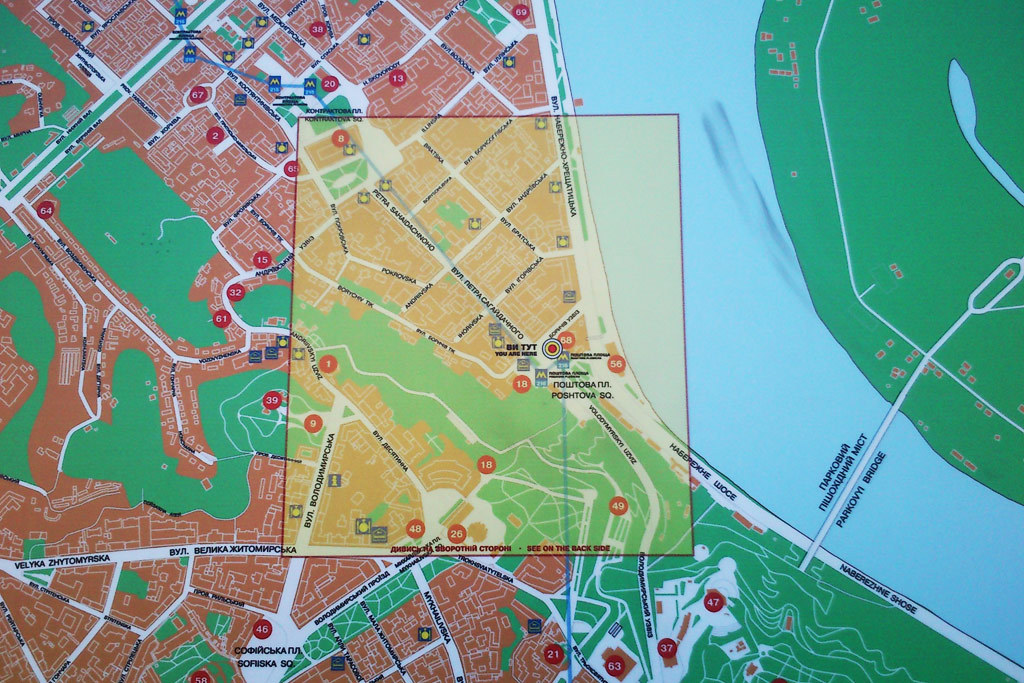 Все, что удалось заметить в этот час (а часы показывали 09:00), это пару рабочих, переносящих через дорогу разделительные блоки, одного рабочего, сидящего на еще не унесенном блоке, и группу землекопов, работающих далеко от дороги – неподалеку от церкви Рождества Христова. Соответственно, никаких «пробок» ни на Столичном шоссе, ни на Набережно-Крещатицкой, ни на Владимирском спуске, ни на Сагайдачного не наблюдалось. Так что, говорить о том, что реконструкция Почтовой площади действительно началась, и это вызывает трудности с проездом транспорта, пока нет оснований…