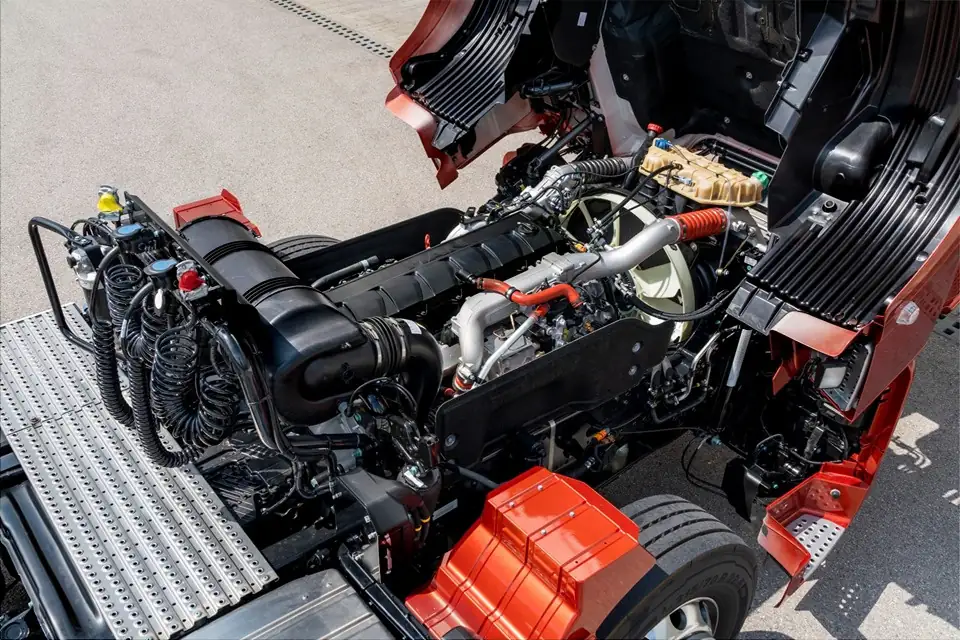 С моторным тормозом Turbo-EVBec двигатель способен обеспечить максимальную тормозную мощность в 350 кВт. Снижению расхода топлива способствует технология Common Rail с давлением впрыска 2500 бар, а также агрегаты (генератор, компрессор и насос системы охлаждения), которые отбирают поток мощности в зависимости от необходимой нагрузки.