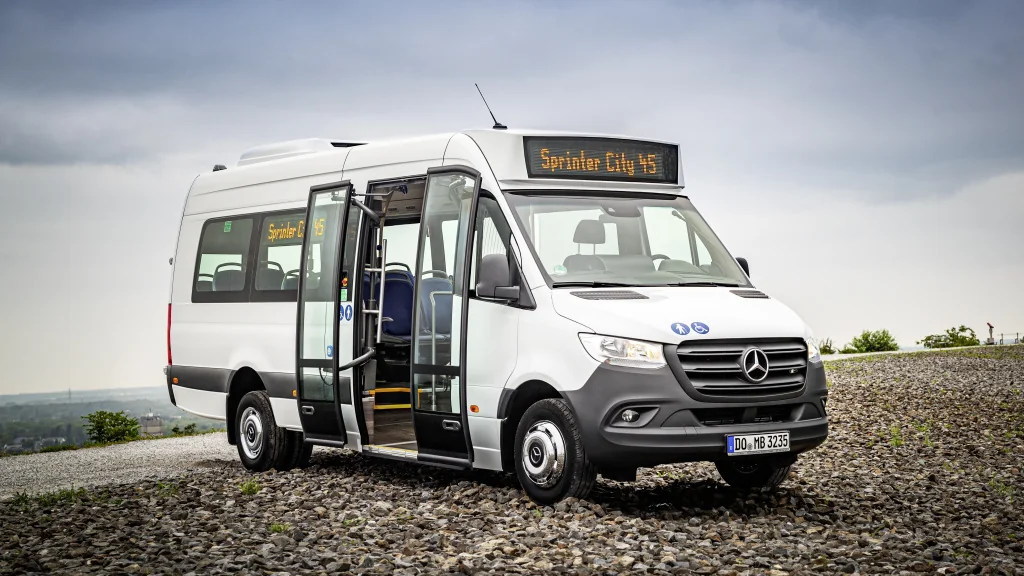 Отметим, что модель Mercedes-Benz Sprinter City 45 имеет общую пассажировместимость 30 человек. Габаритная длина составляет 7367 мм, ширина – 2020 мм и высота – 2860 мм. Полная масса – 5,0 т.