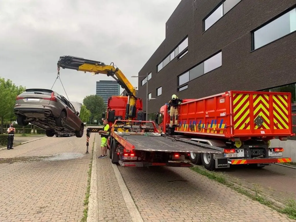 Последний выполнен в виде сменного кузова типа «мультилифт» и доставляется на место происшествия вместе с эвакуатором. Неисправный электромобиль после возгорания и последующего тушение все-равно представляет угрозу вторичного воспламенения, поэтому для полного охлаждения его держат под водой минимум 24 часа.