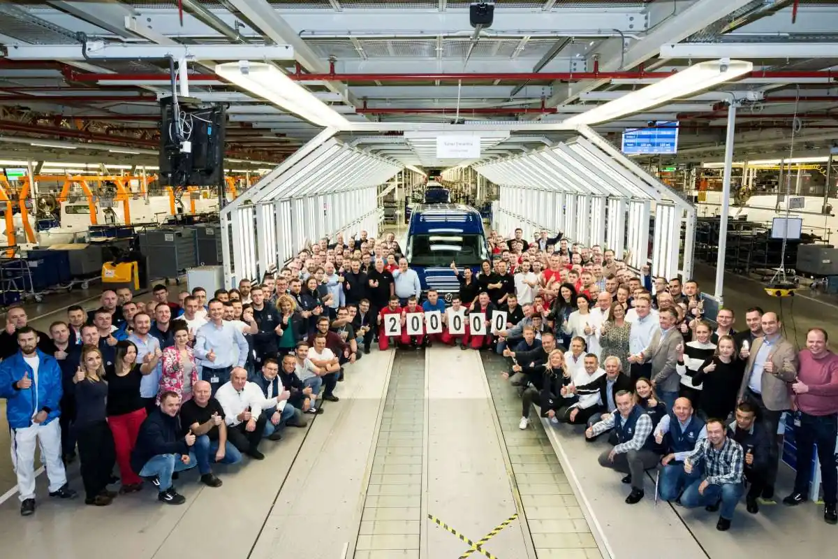 Юбилейным автомобилем стал легкий развозной фургон Volkswagen Crafter. Изготовить 200 тысяч машин на заводе в польском городе Вжешня удалось всего за 39 месяцев. За это время было выпущено 172 600 единиц Crafter и 27 400 машин MAN TGE, построеных на общей платформе.