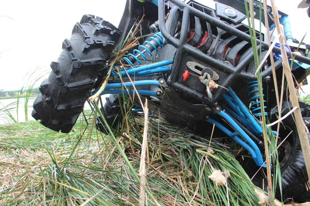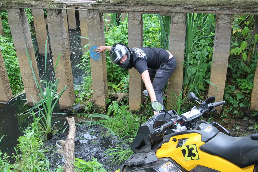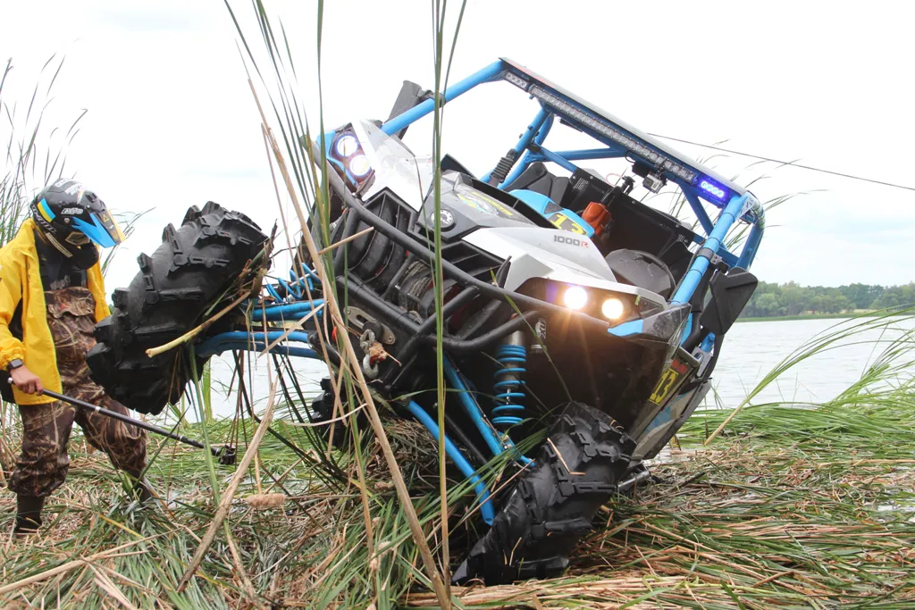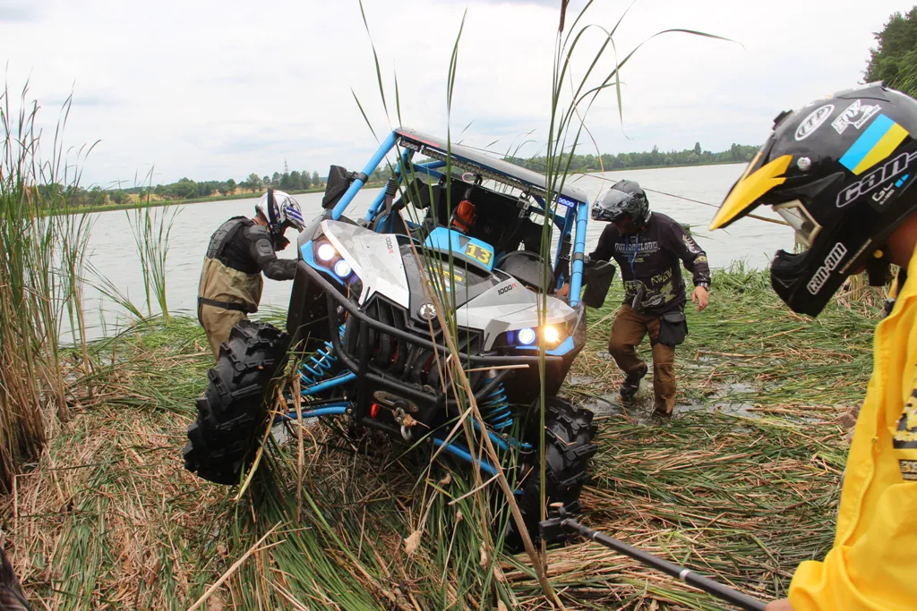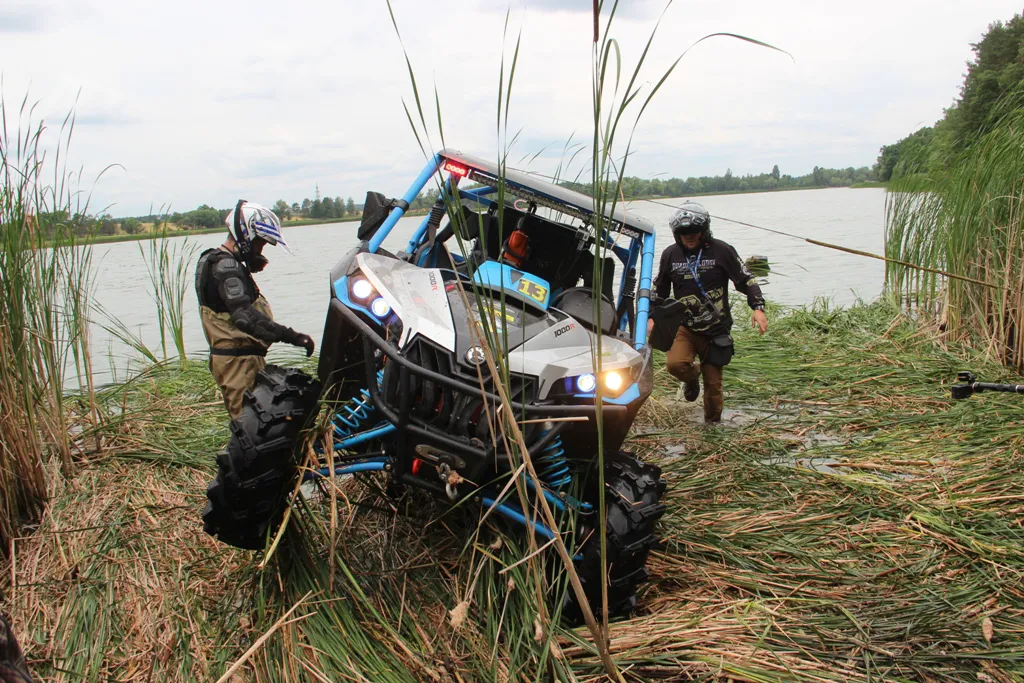 Не только на пути к «точкам» экипажей подстерегала опасность. Так, после взятия одной из «точек» экипаж под номером «13» наехал на прикрытый водой и камышом пень. Преодолеть эту преграду получилось только при помощи двух других участников команды. Багги с двух сторон зацепили лебедками, наклонили и только тогда он смог съехать с этого пня, проверив тем самым сплоченность в командных действиях и взаимовыручку. В двигатель другого участника после преодоления водных преград попало немного воды. Чтобы его не «убить», были даже мысли о прекращении участия в соревнованиях. Но после технических консультаций внутри команды решили продолжать вместе бороться за победу. И не прогадали. Оставшиеся «точки» были «взяты» и этим экипажем, который благополучно самостоятельно добрался и до финиша.