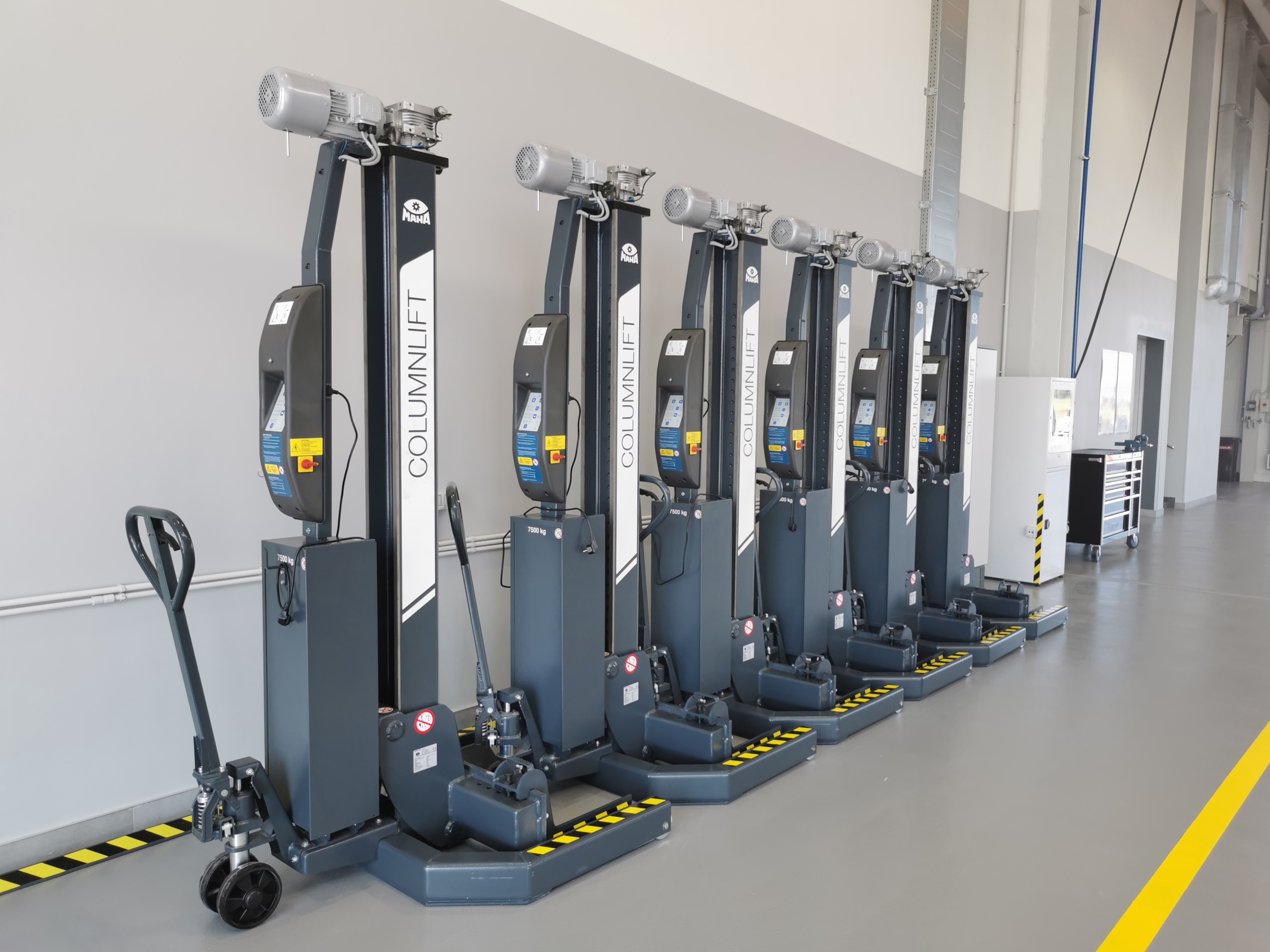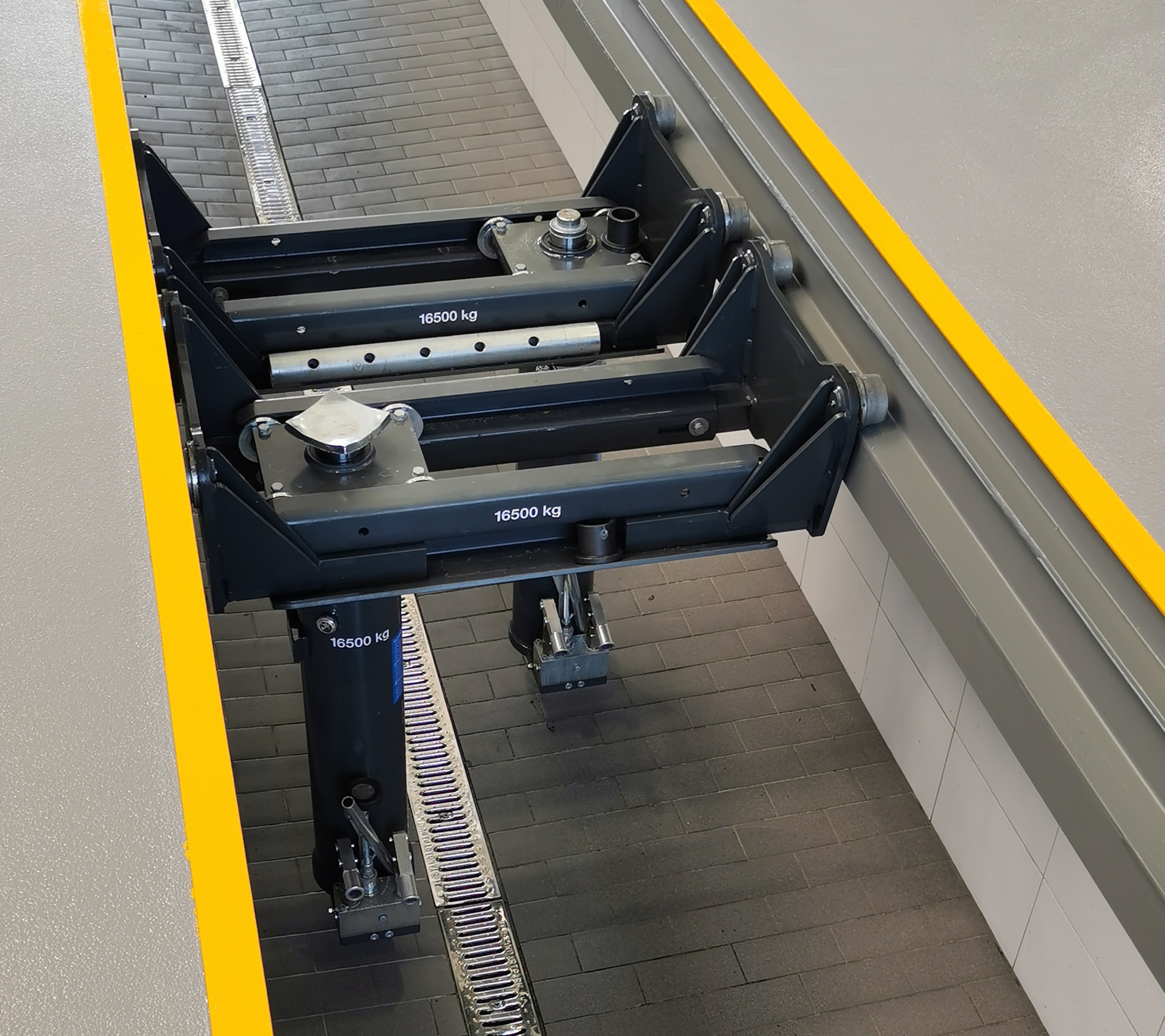 Станция оснащена 4-мя плунжерными подъемниками общей грузоподъемностью 60 т, а также передвижным колонным подъемником с шестью автономными опорами грузоподъемностью 7,5 т каждая.