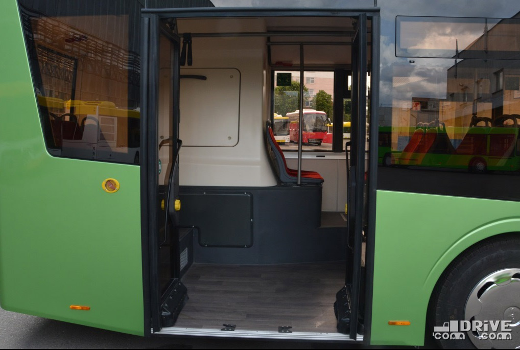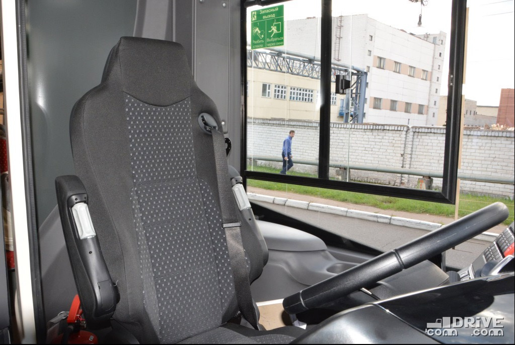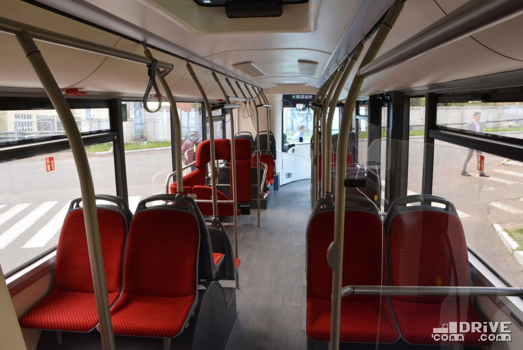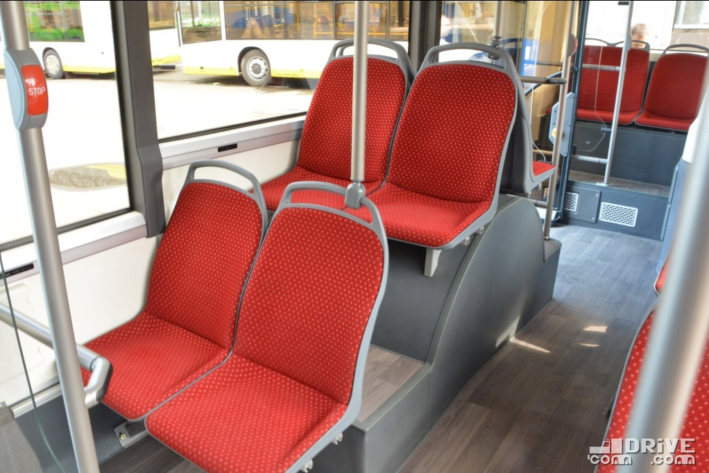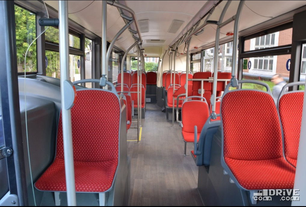 Салон – полностью низкопольный, причем высота входы у всех трех дверей равна всего 320 мм. Такой показатель в ЕС имеет лишь вышеупомянутый Solaris. Немаловажно, что полезная площадь пола возросла на 30%. В итоге количество мест для сидения увеличилось с 12 до 16.