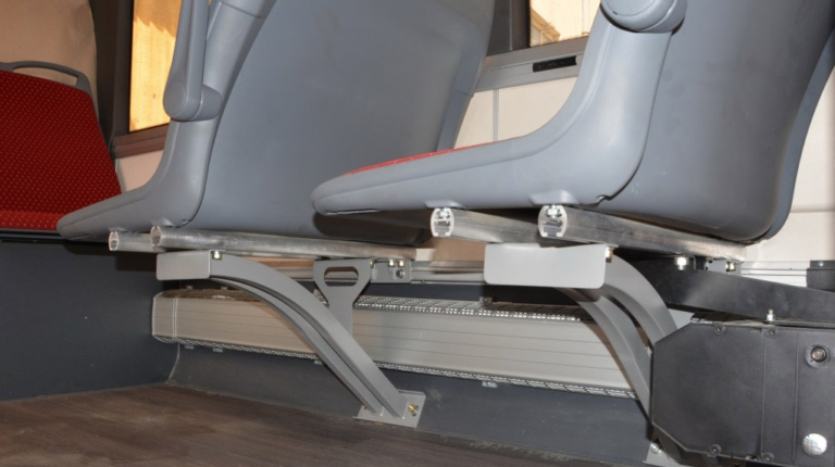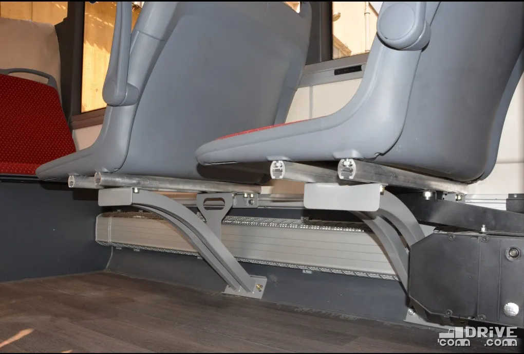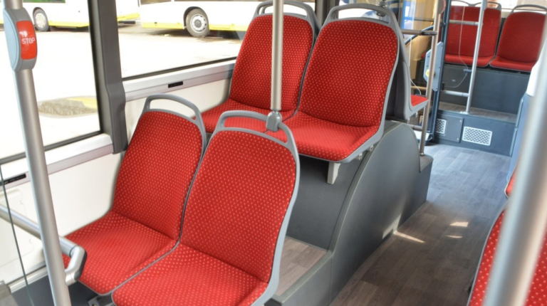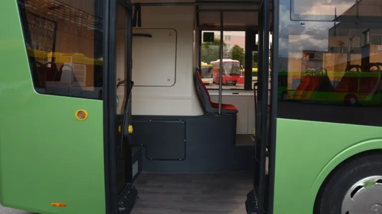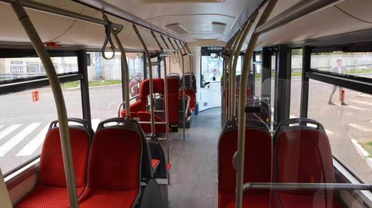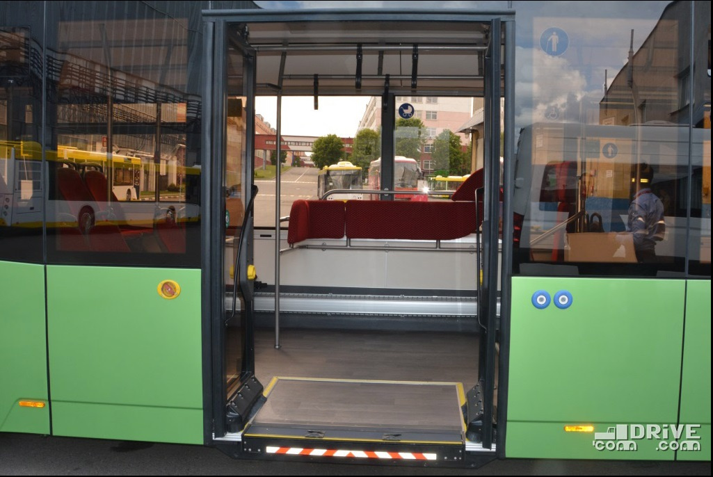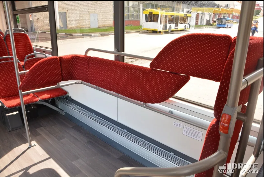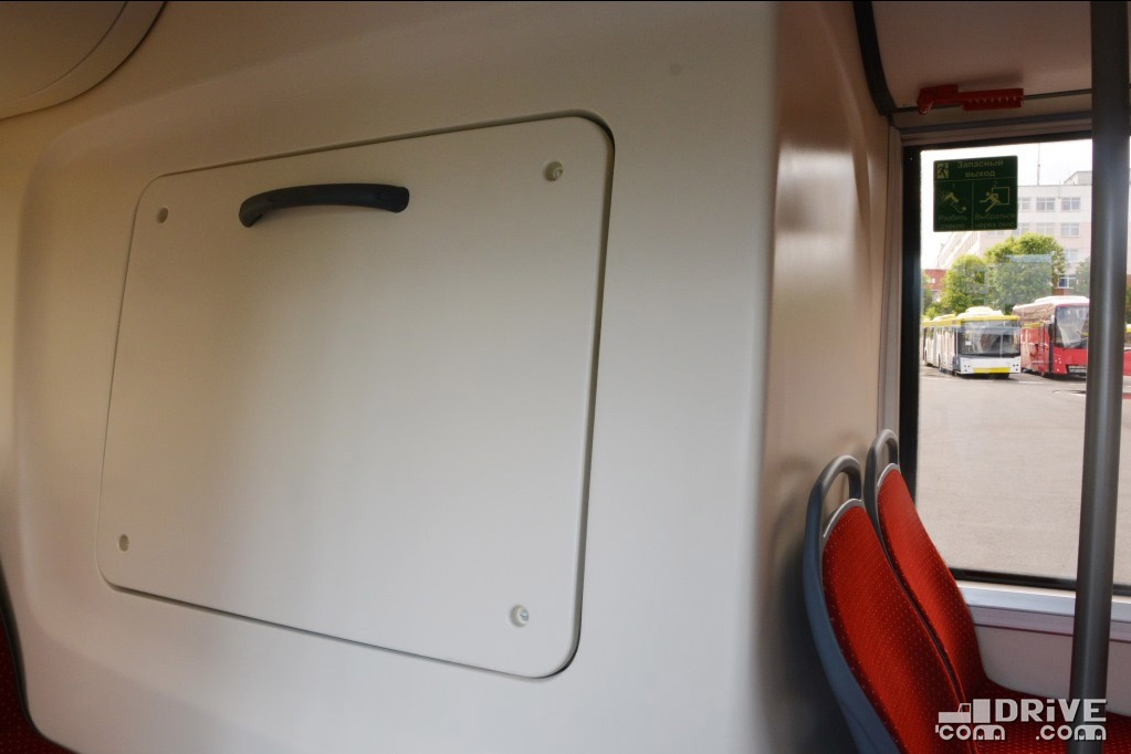 Салон – полностью низкопольный, причем высота входы у всех трех дверей равна всего 320 мм. Такой показатель в ЕС имеет лишь вышеупомянутый Solaris. Немаловажно, что полезная площадь пола возросла на 30%. В итоге количество мест для сидения увеличилось с 12 до 16.