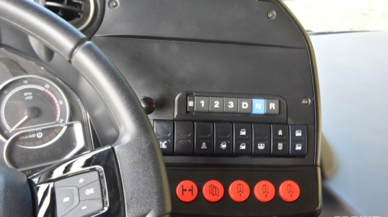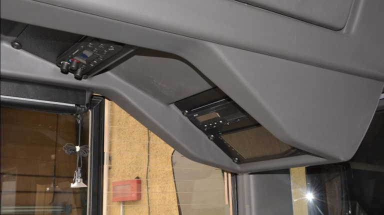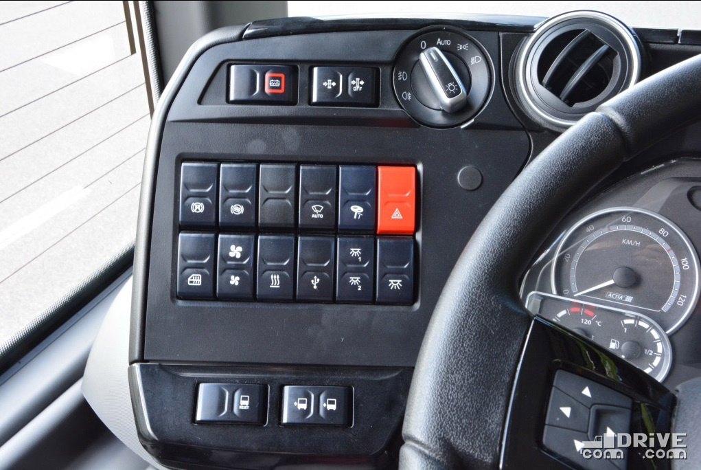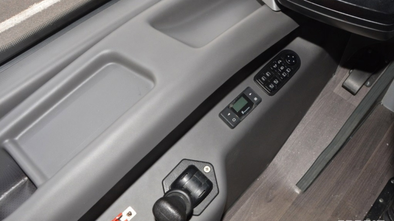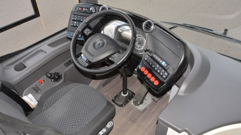 Панель приборов – это модульная платформа Actia Podium 2. Унифицированное рабочее место отвечает не только всем обязательным правилам, но и факультативным EBSF и VDV. Они устанавливаются на все автобусы для рынка ЕС, в том числе китайскими производителями при поставке техники в Европу, с 2017 года – также обязательное требование в некоторых городах России, в частности, Мосгортранса.