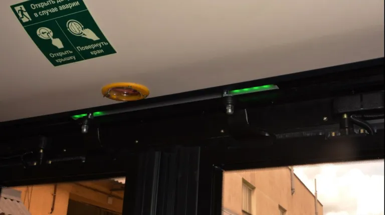 Бесконтактная система противозащемления срабатывает без физического контакта полотна двери с пассажиром.