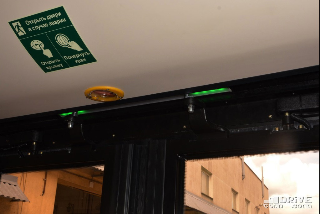Обновленная функциональность управления дверьми: двухсторонние кнопки открытия/закрытия двери пассажирами – “теплые кнопки”. Используются при низкой напряженности пассажиропотока, когда пассажир открывает только ту дверь, которую он использует, а не все двери автобуса, как обычно. Позволяет уменьшить нагрузку на климат-систему салона, и, в результате, снизить расход топлива.