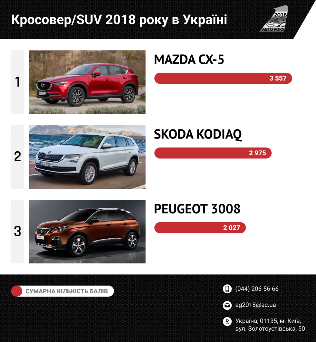 В нынешнем конкурсе «Автомобиль года в Украине 2018» самыми непредсказуемыми стали результаты подсчета голосов при выборе финалиста в одной из главных номинаций, а именно, «Кроссовер/SUV 2018 года в Украине».