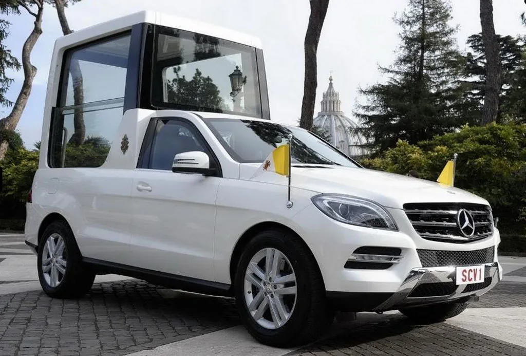 Продолжая более чем 80-летнюю историю сотрудничества Mercedes и Ватикана, Председатель совета директоров немецкого концерна Дитер Цетше (Dieter Zetsche) передал в церковный гараж очередную версию парадного автомобиля для Папы Римского. Новый «папамобиль» вновь базируется на базе внедорожного Mercedes ML. И, естественно, он исполнен в классическом ослепительном белом цвете.