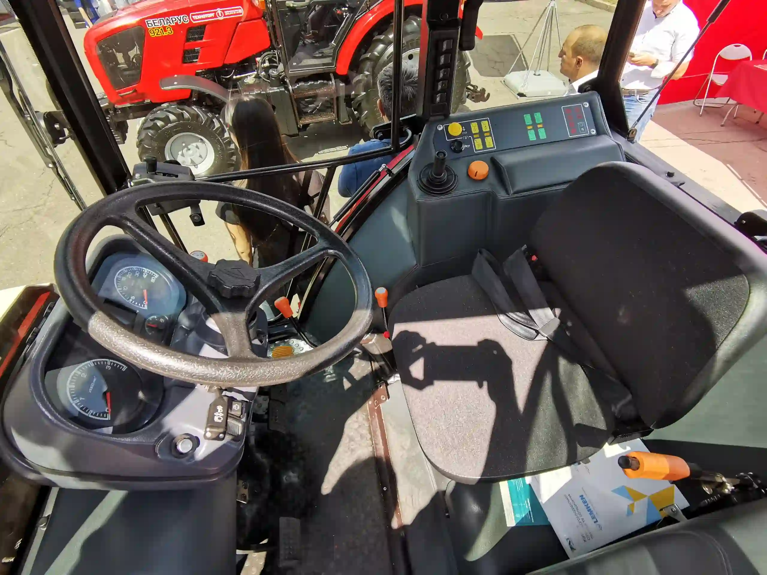 В модели Belarus 742.7 также поменялась и эргономика кабины. Внутри обращает внимание новый щиток приборов и блок управления навеской.