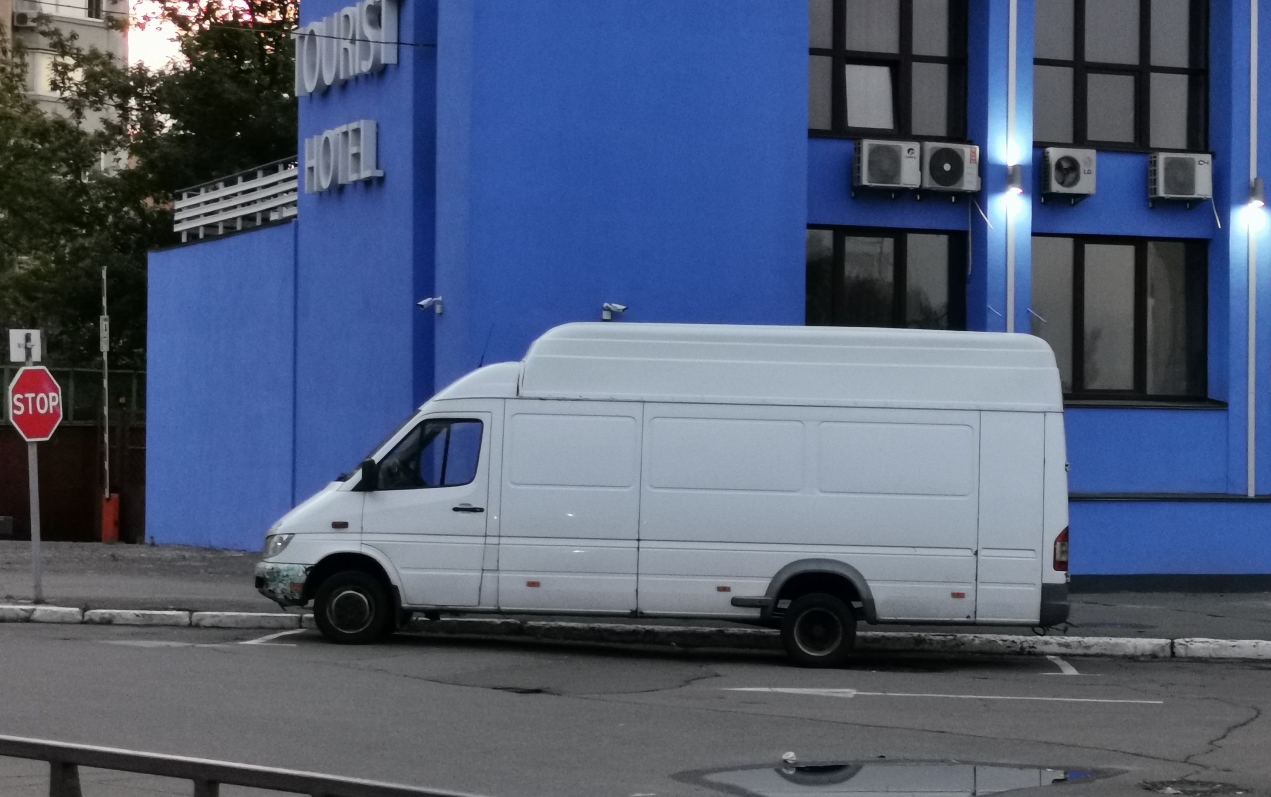 А вот совсем недавно на киевских дорогах повстречался и мега большой грузовой фургон. Машина сразу же привлекает внимание очень высокой крышей, причем «надбавку» хорошо видно по крыше над кабиной водителя, которая осталась от заводской модели.
