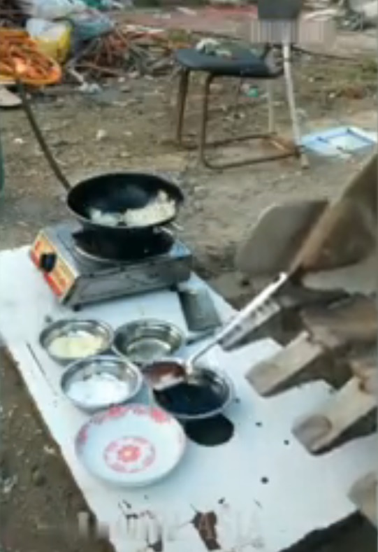На третьем видео ковш экскаватора выполняет функцию опытного повара, который «стальной рукой» с ложкой что-то жарит на сковородке, предварительно окуная кусочки в муку, а затем поливая различными соусами.