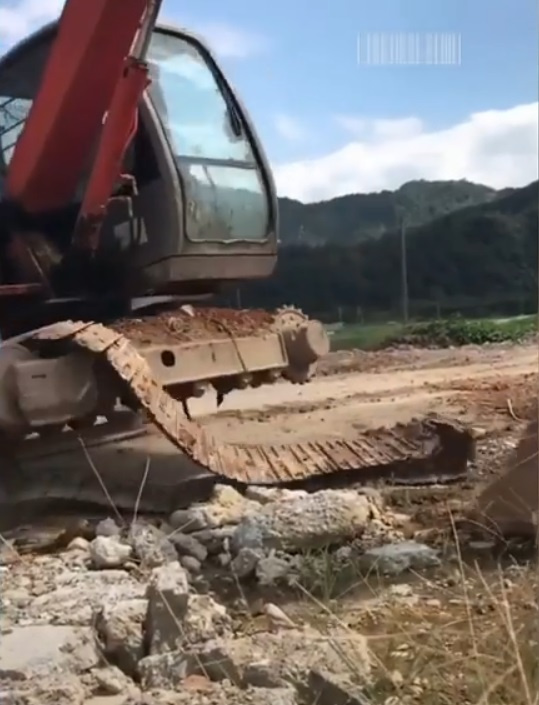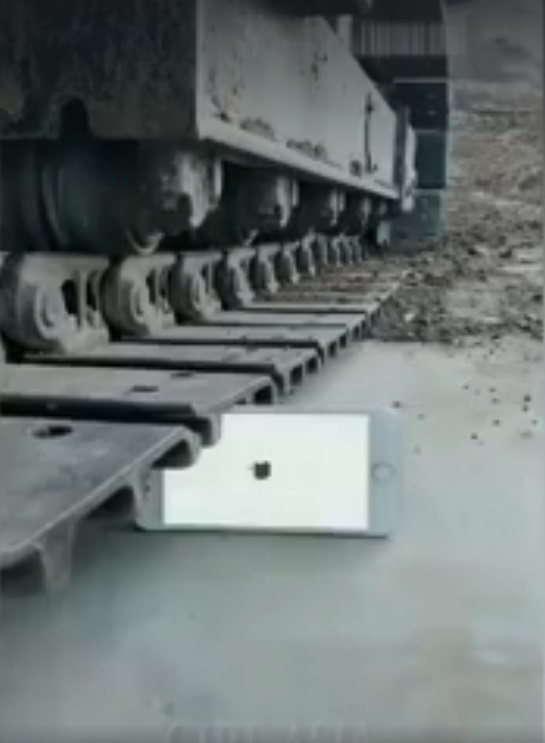 А на этом отрезке видно как гусеницы экскаватора вот-вот раздавят Iphone. Ан-нет. Поставленный на ребро гаджет стальная не только не давит, а ювелирно включает.