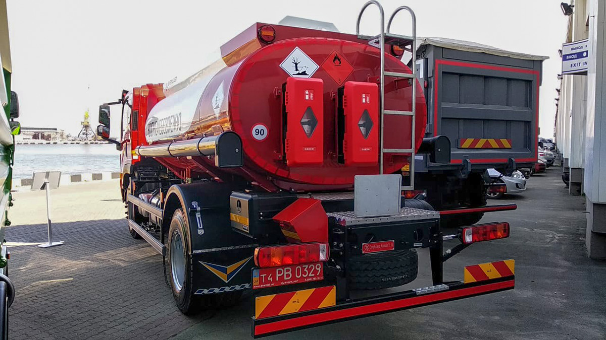 Машина оснащена 8-кубовой цистерной и предназначена для перевозки, хранения светлых нефтепродуктов, а также выдачу топлива через ВМВП.
