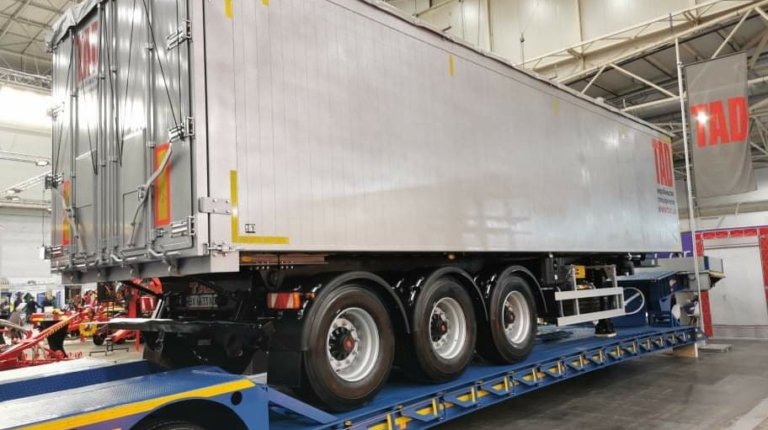 Ещё один известный украинский производитель прицепной техники – компания TAD презентовала на выставке «ИнтерАгро 2020» cамосвальный полуприцеп-зерновоз TAD.Аgro 55-3. Кузов полезным объёмом 55 кубометров сделан из алюминия. Снаряжённая масса – 6,9 т, грузоподъемность – 25 т. Длина полуприцепа – 9680 мм, ширина – 2550 мм и высота – 3700 мм.