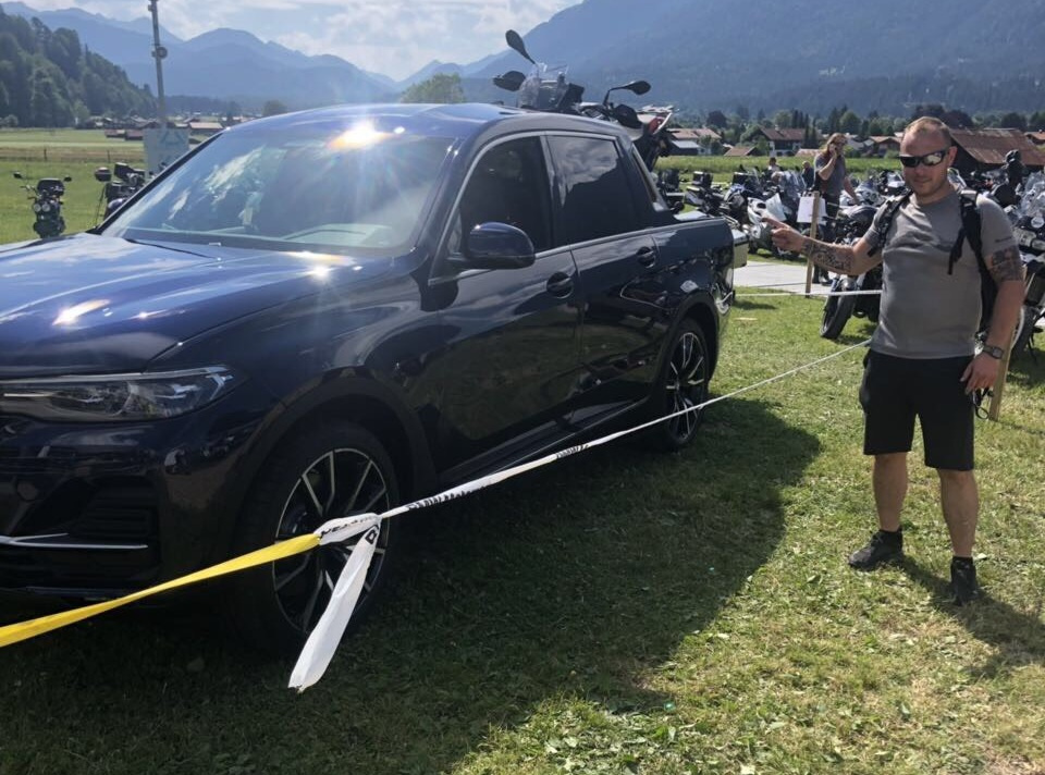 Уникальный пикап BMW X7 был замечен на слете почитателей мотоциклов баварской марки – BMW Motorrad Days, проходившем с 5 по 7 июля в городе Гармиш-Партенкирхен, недалеко от самой высокой горы Германии – Цугшпитце (2962 м). Эксклюзивные фотографии машины опубликованы на сайте ТопЖыр.