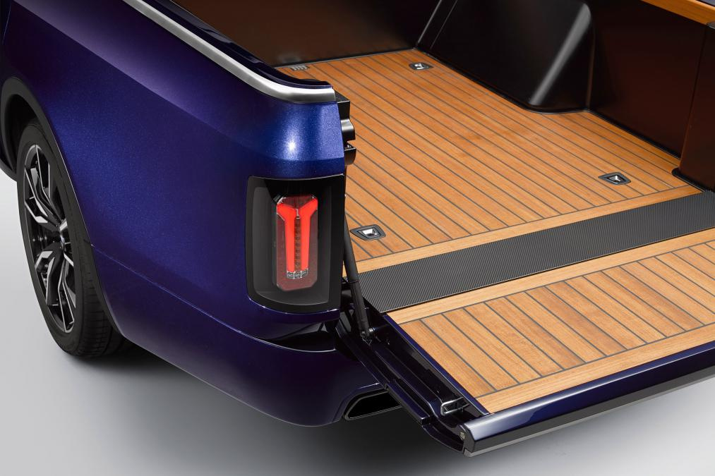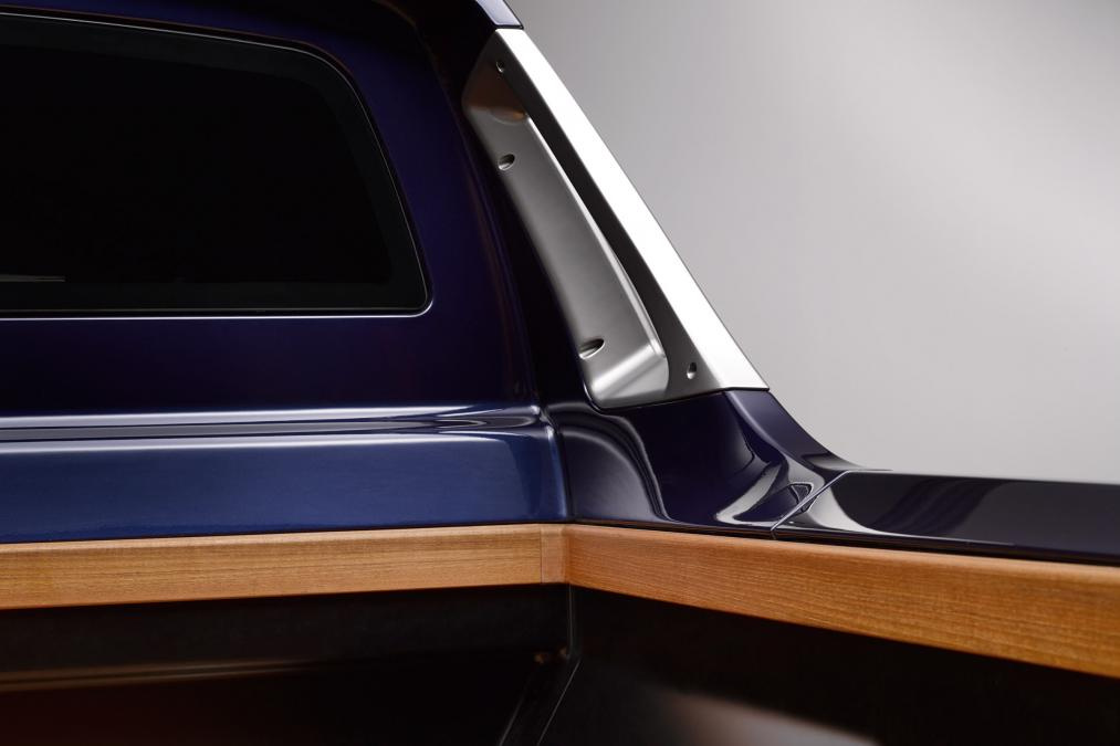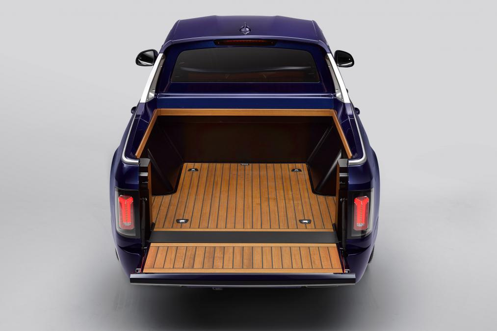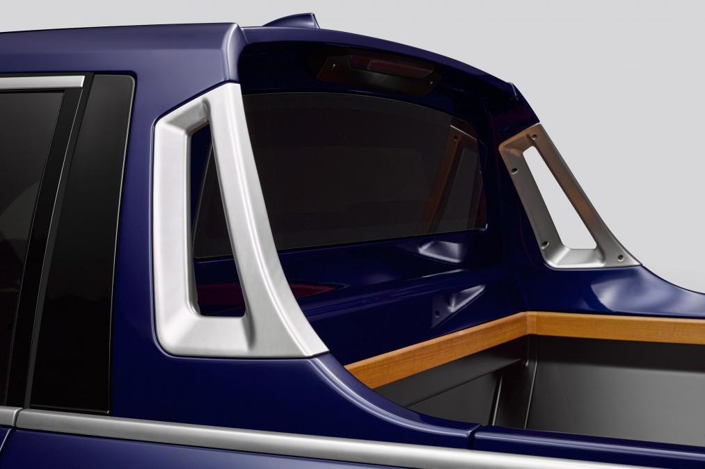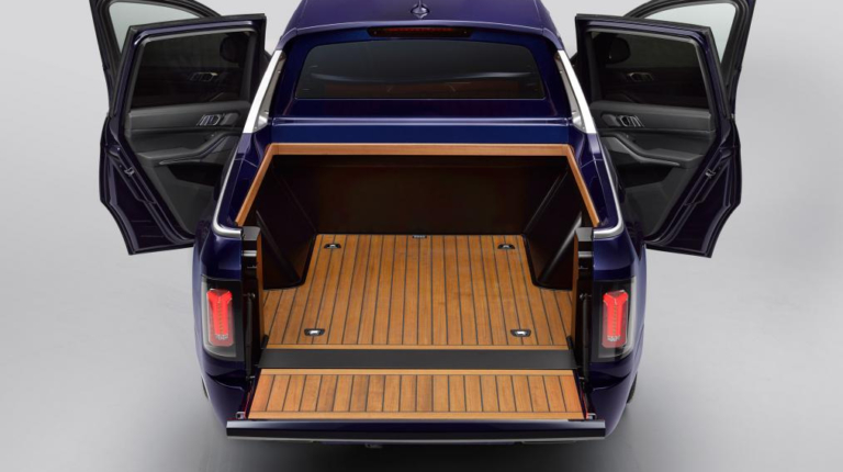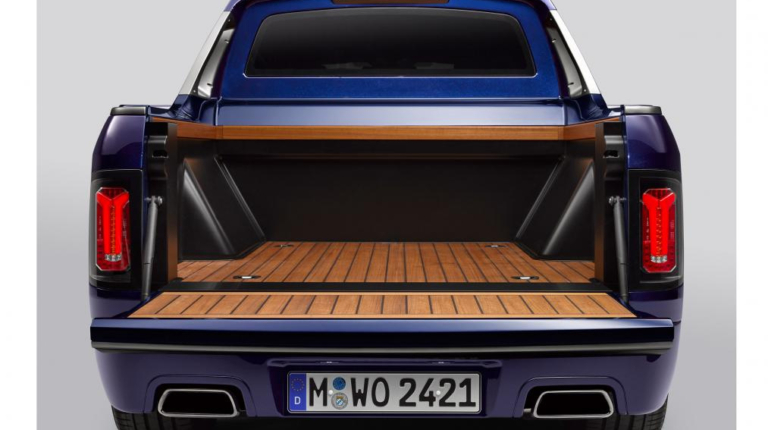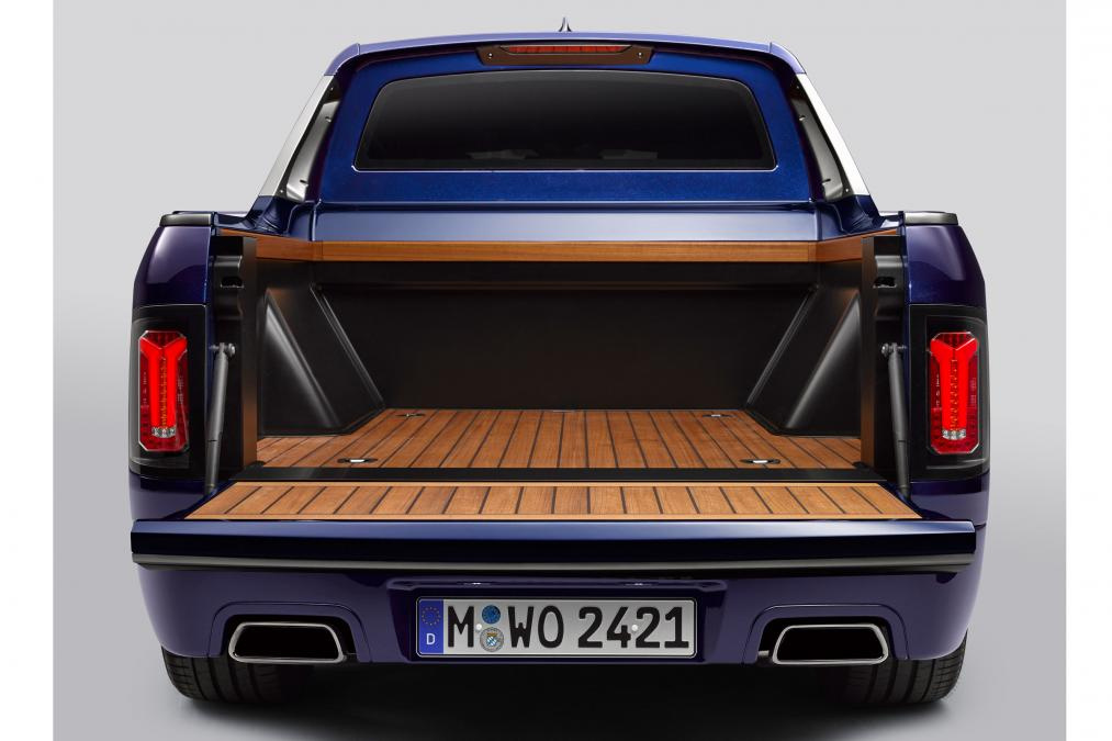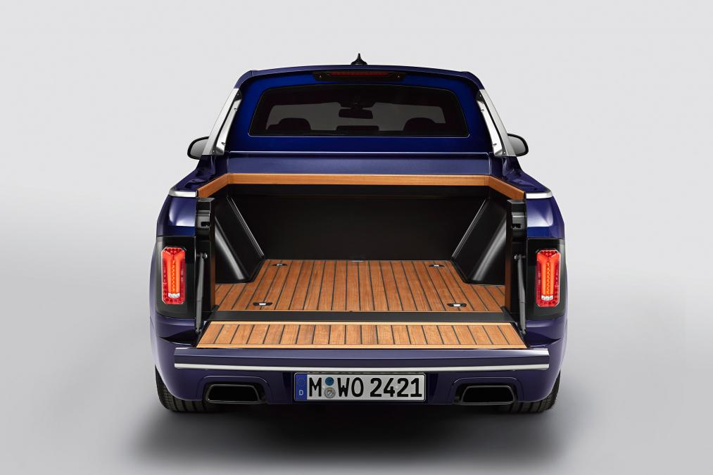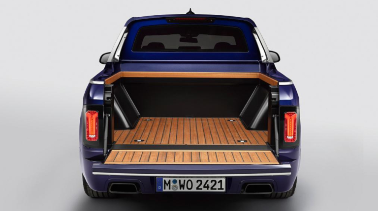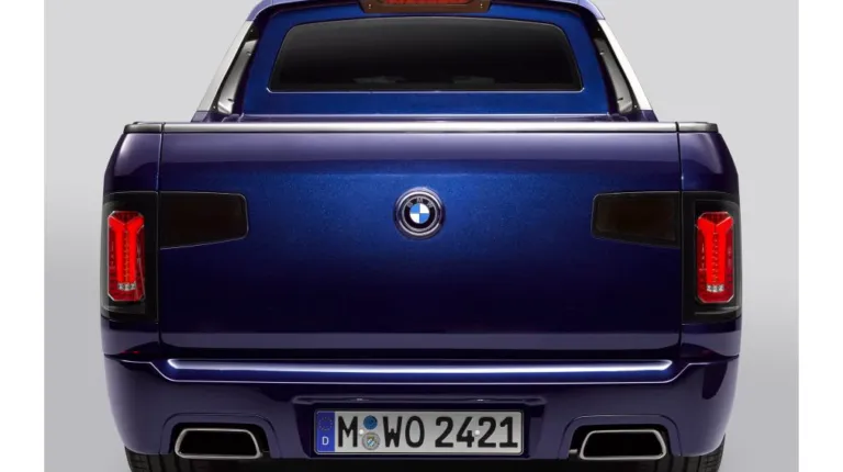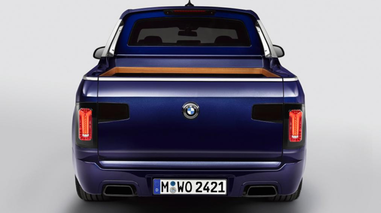 Пикап получил грузовую платформу длиной 200 см (с поднятым бортом – 140 см), на которую без проблем помещается мотоцикл класса эндуро BMW F850 GS. В конструкции использован углепластик, что позволило облегчить машину на 200 кг. По сравнению с серийным кроссовером X7 автомобиль стал длиннее на 10 см. Интересная деталь – ручки на задних стойках изготовлены на 3D-принтере.